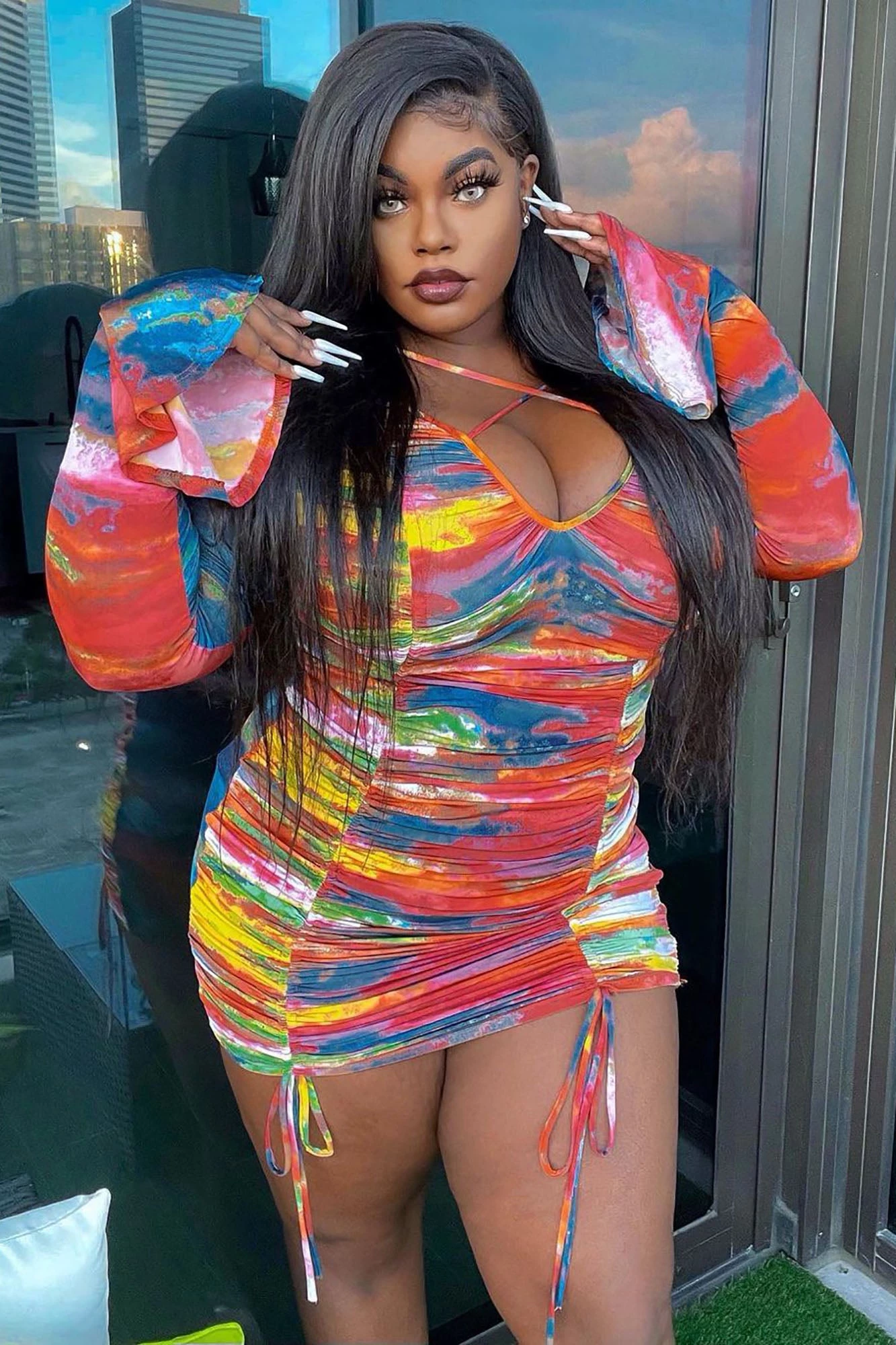 Fashion Nova A Splash Of Color Ruched Mini Dress – Orange/combo