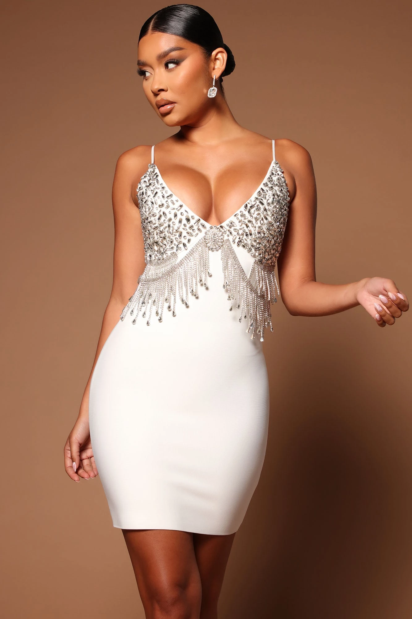 Fashion Nova Adelaide Embellished Bandage Mini Dress – White