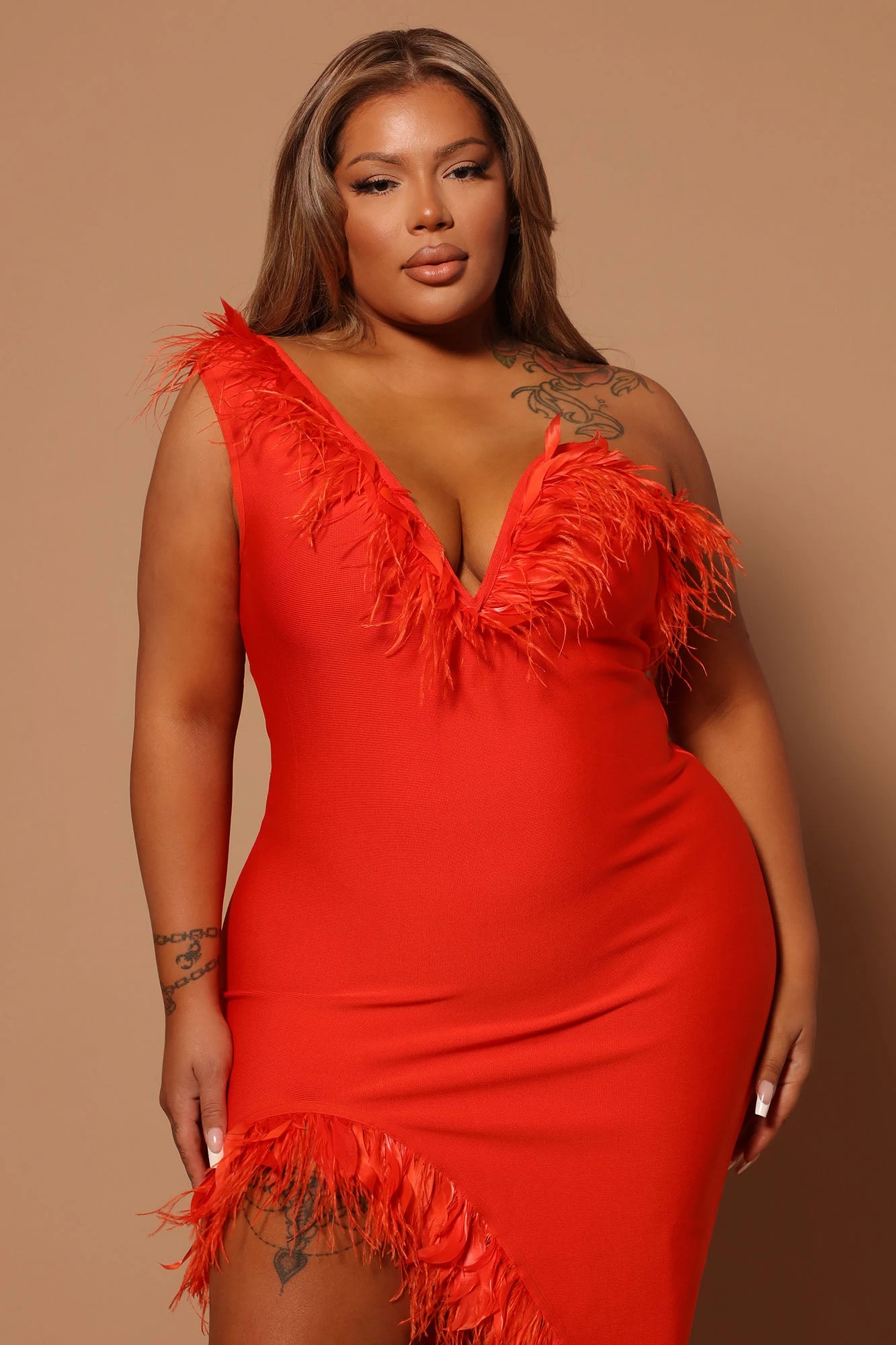 Be the first to review “Fashion Nova Alana One Shoulder Feather Midi Dress – Orange” Cancel reply