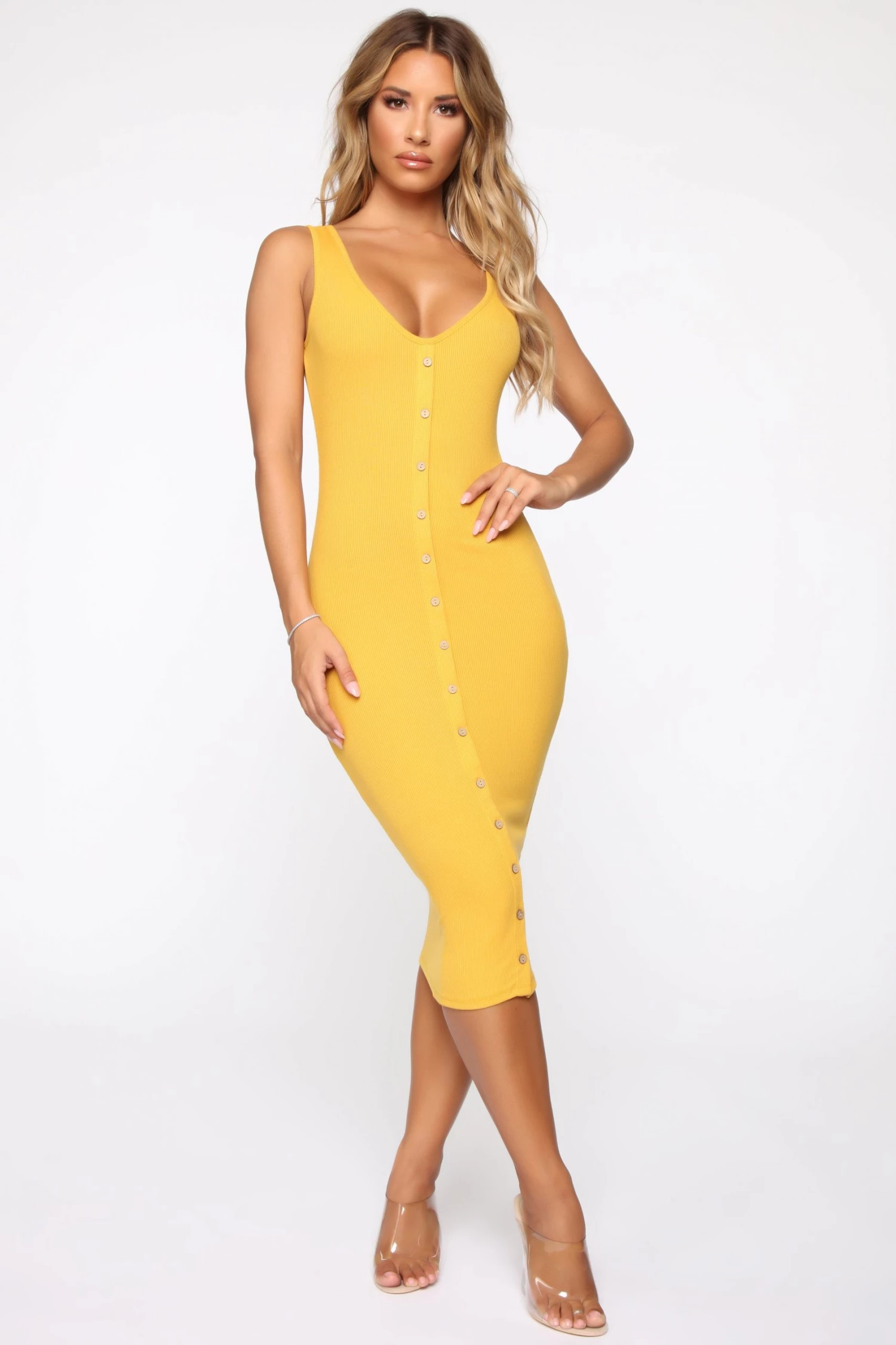 SKU: 1320262238332 Category: Midi Dresses Tags: Back in Stock, casualdresses, color:Mustard, ColorFam-Yellow, detail:Button Front, Dresses, Everyday, figure:Plus, includedinpromo