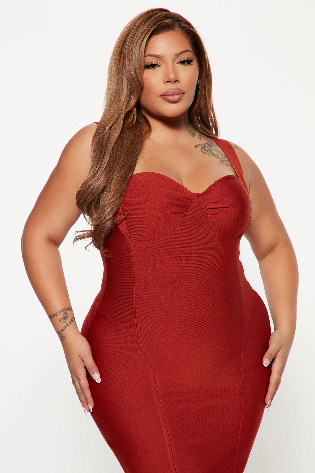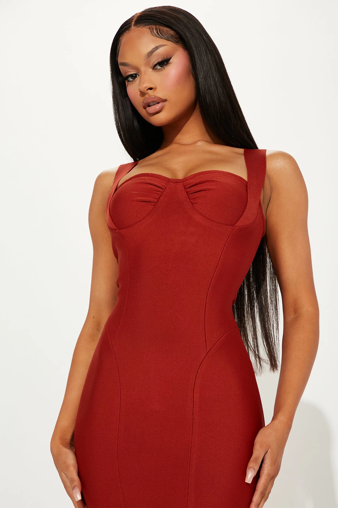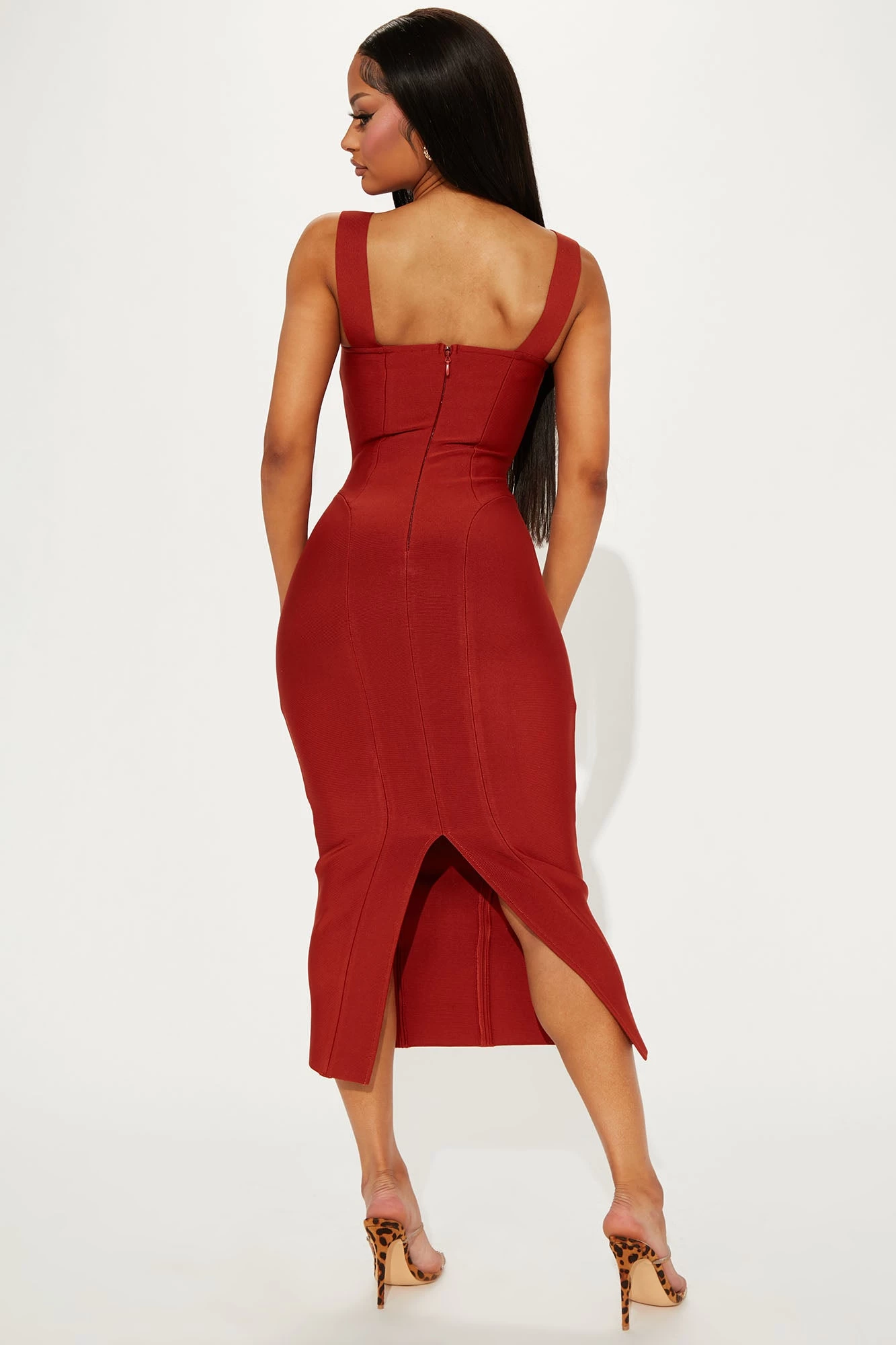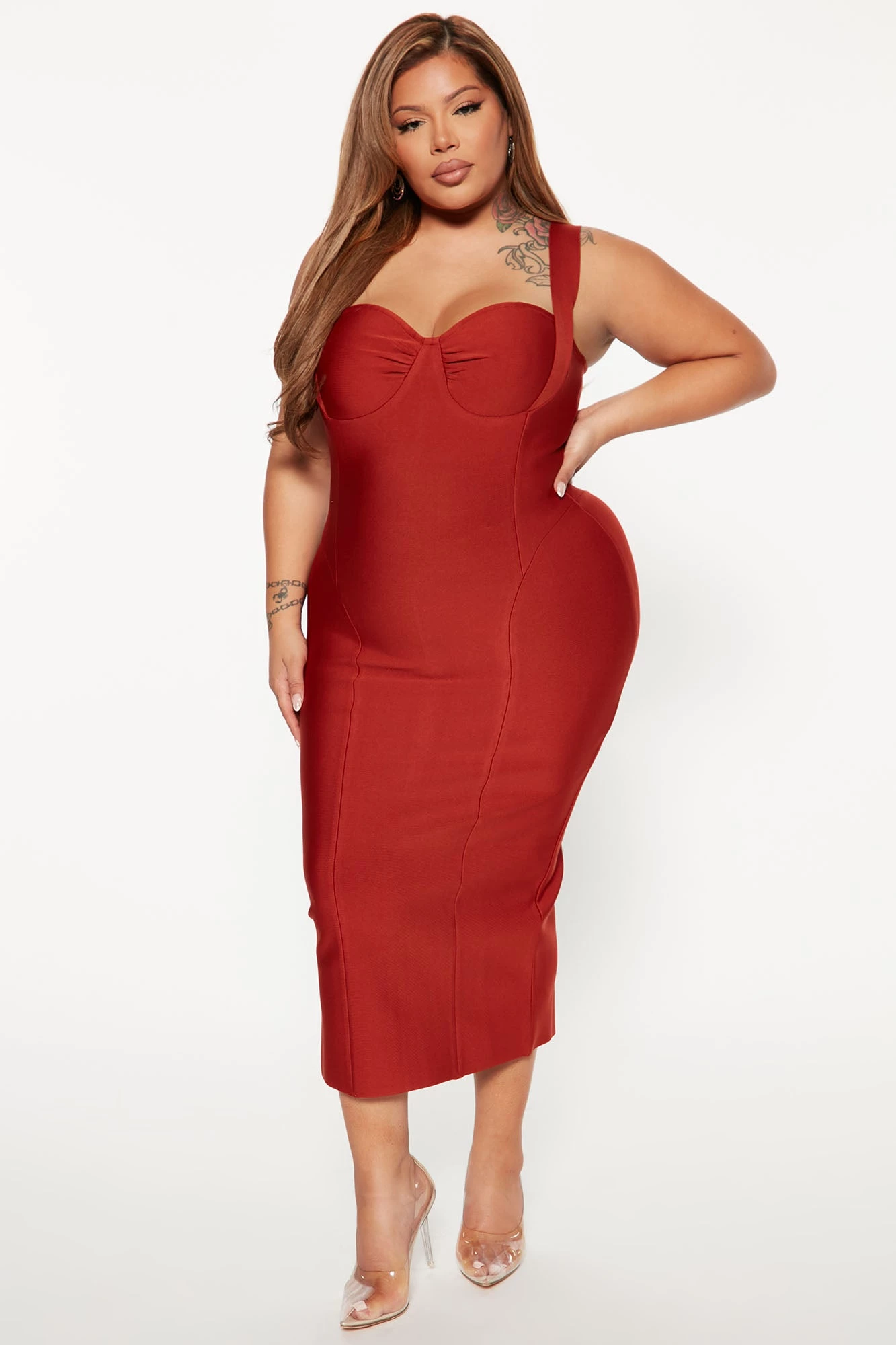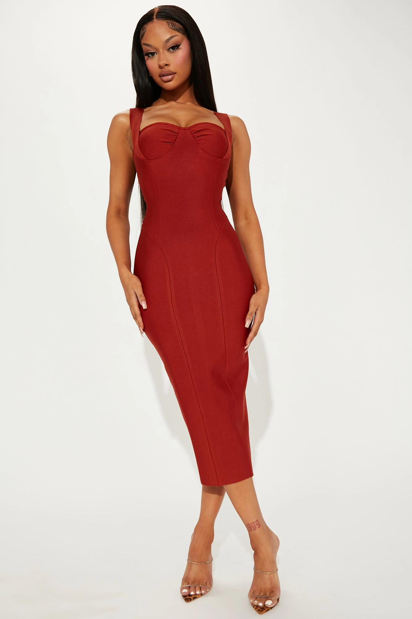 Fashion Nova Always Good Bandage Midi Dress – Rust