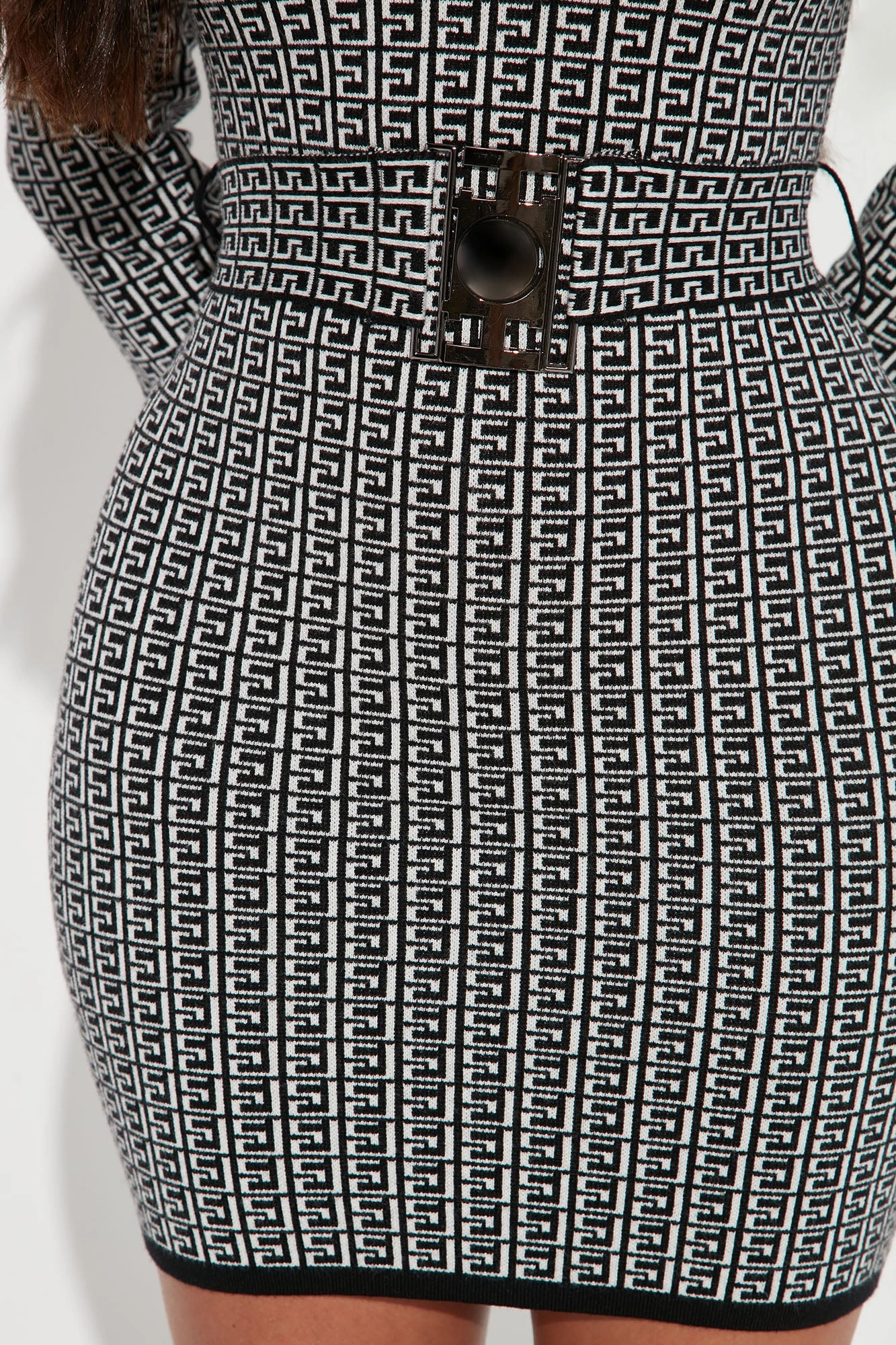 Fashion Nova Always Know Sweater Mini Dress – Black/White