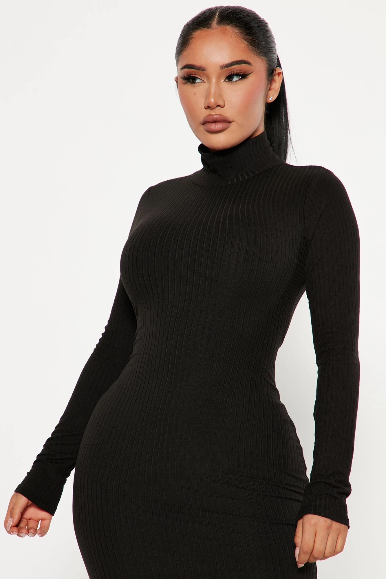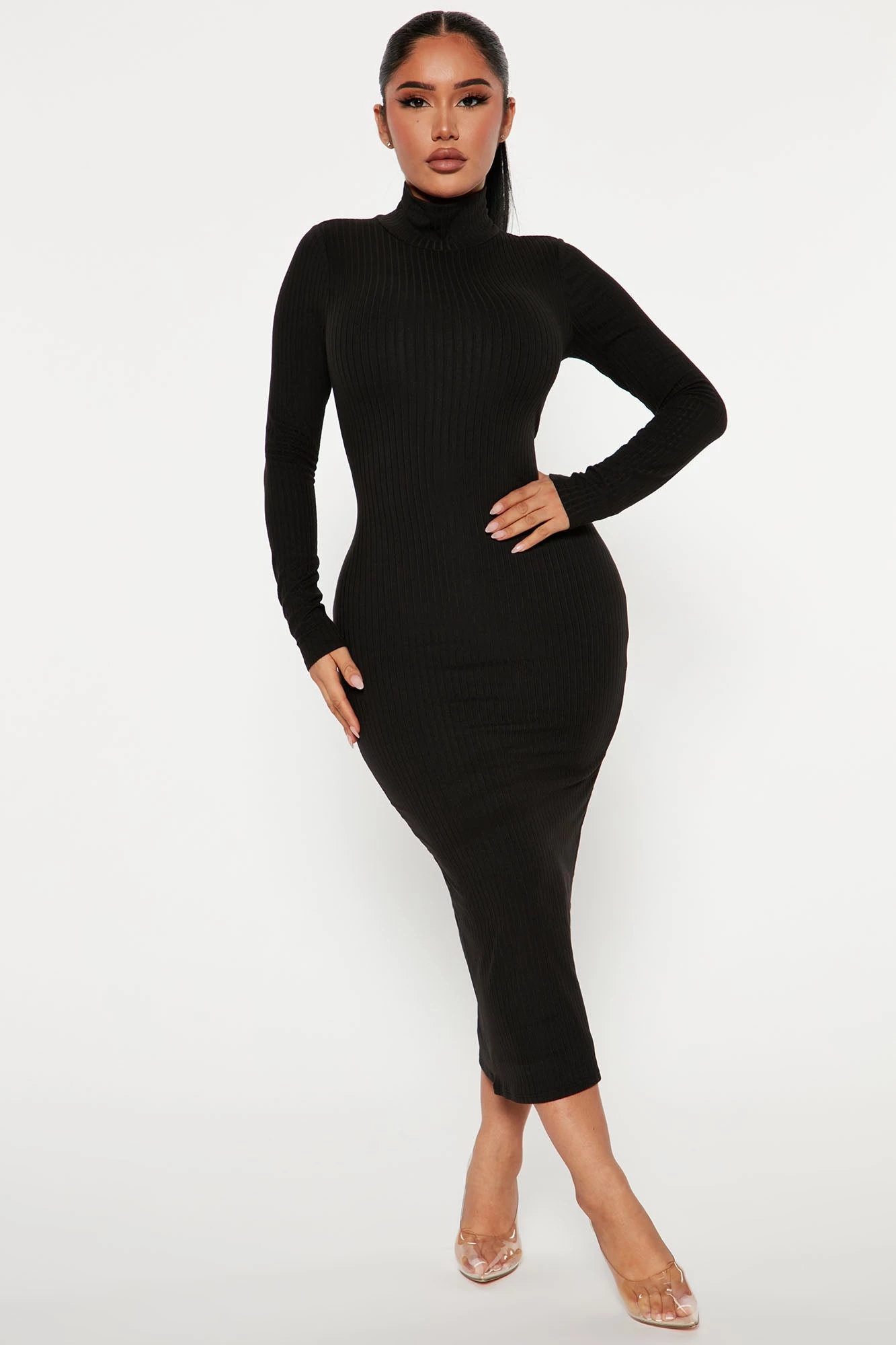 Fashion Nova Amika Ribbed Midi Dress – Black