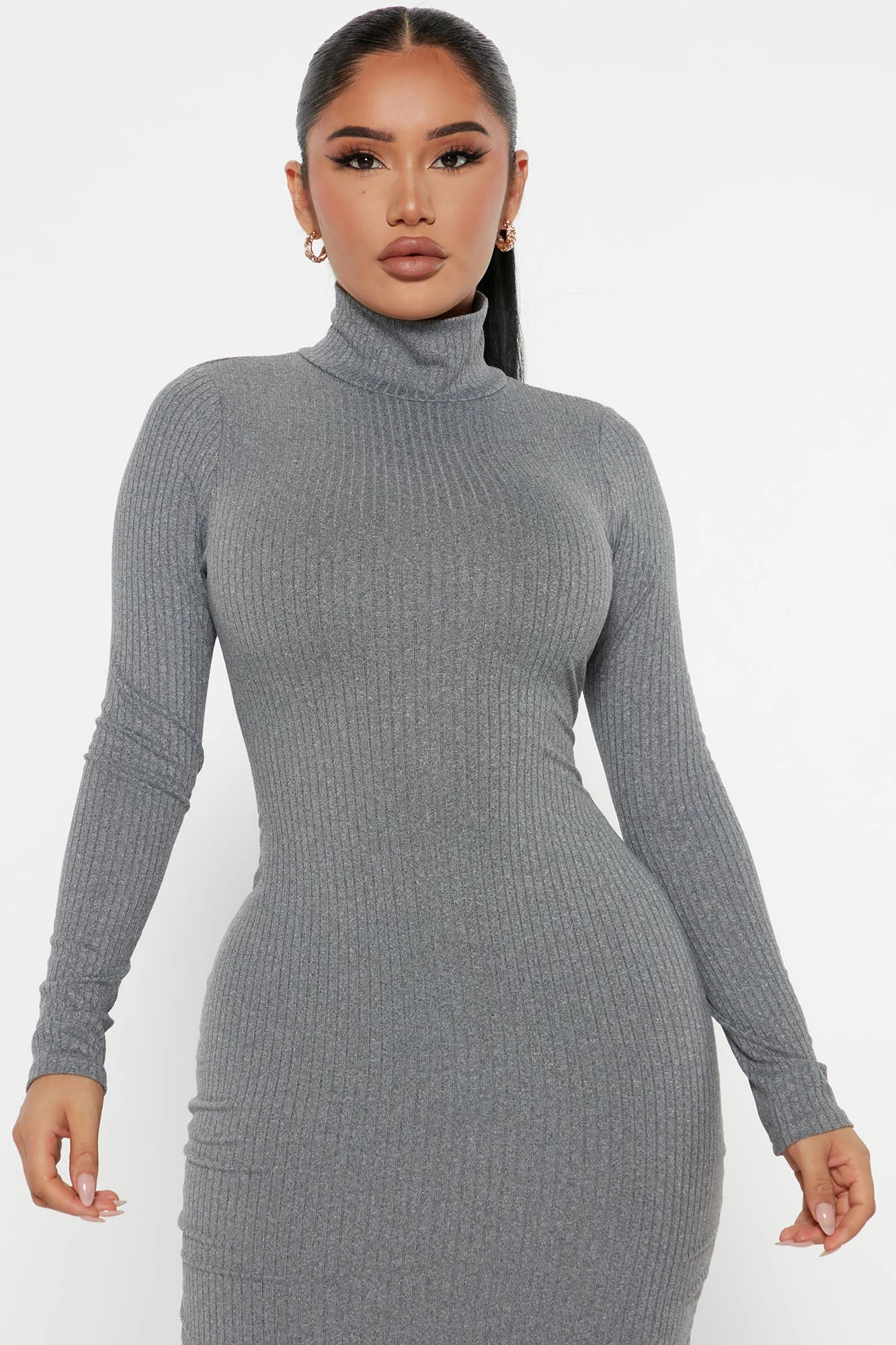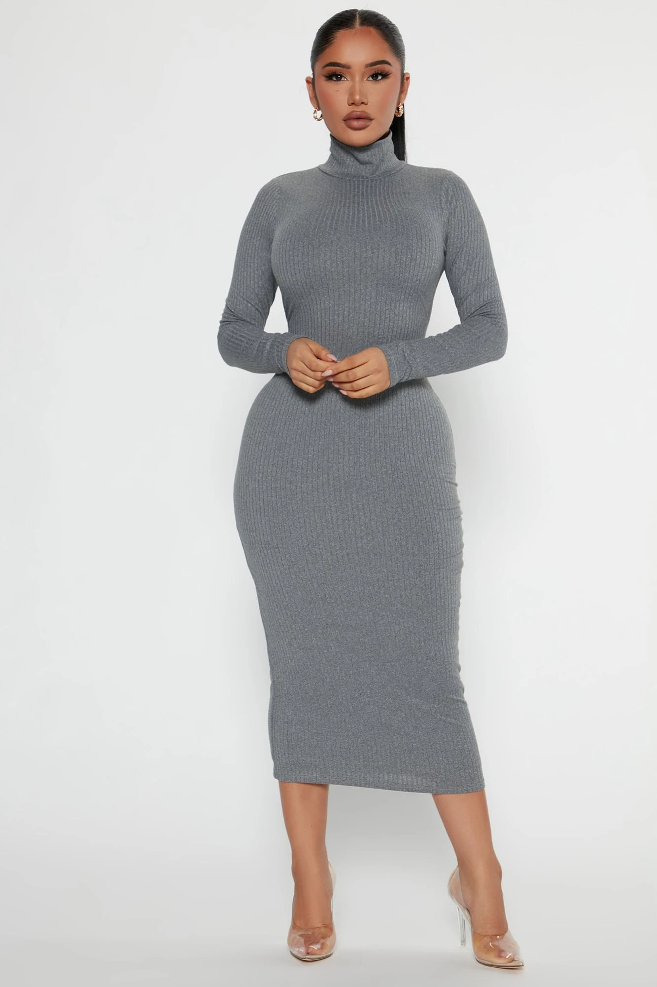 Fashion Nova Amika Ribbed Midi Dress – Charcoal