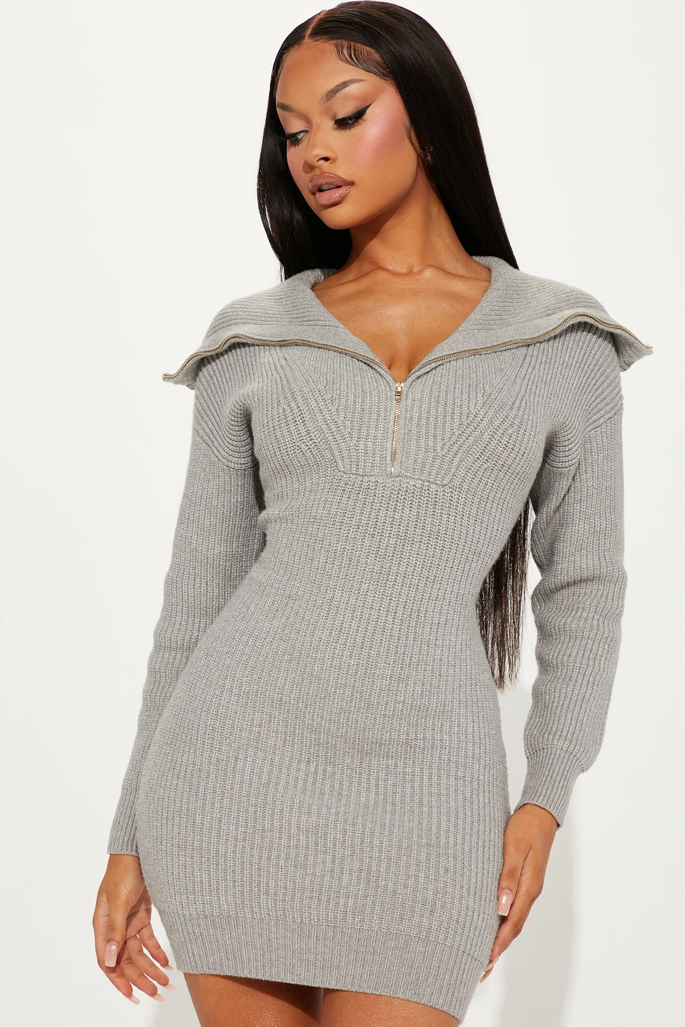 Fashion Nova Amika Sweater Mini Dress – Heather Grey
