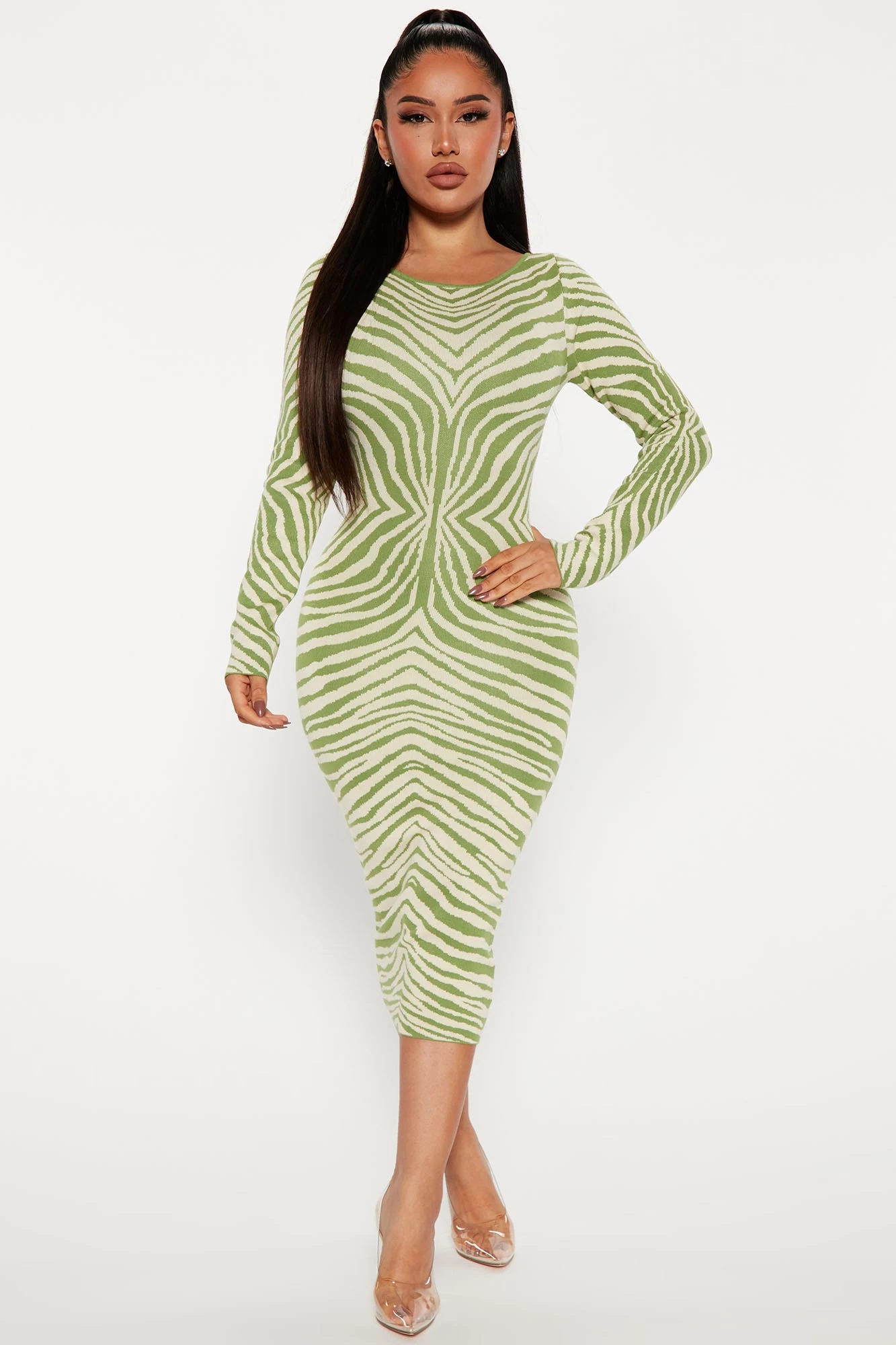 Fashion Nova Amina Sweater Midi Dress – Green/combo