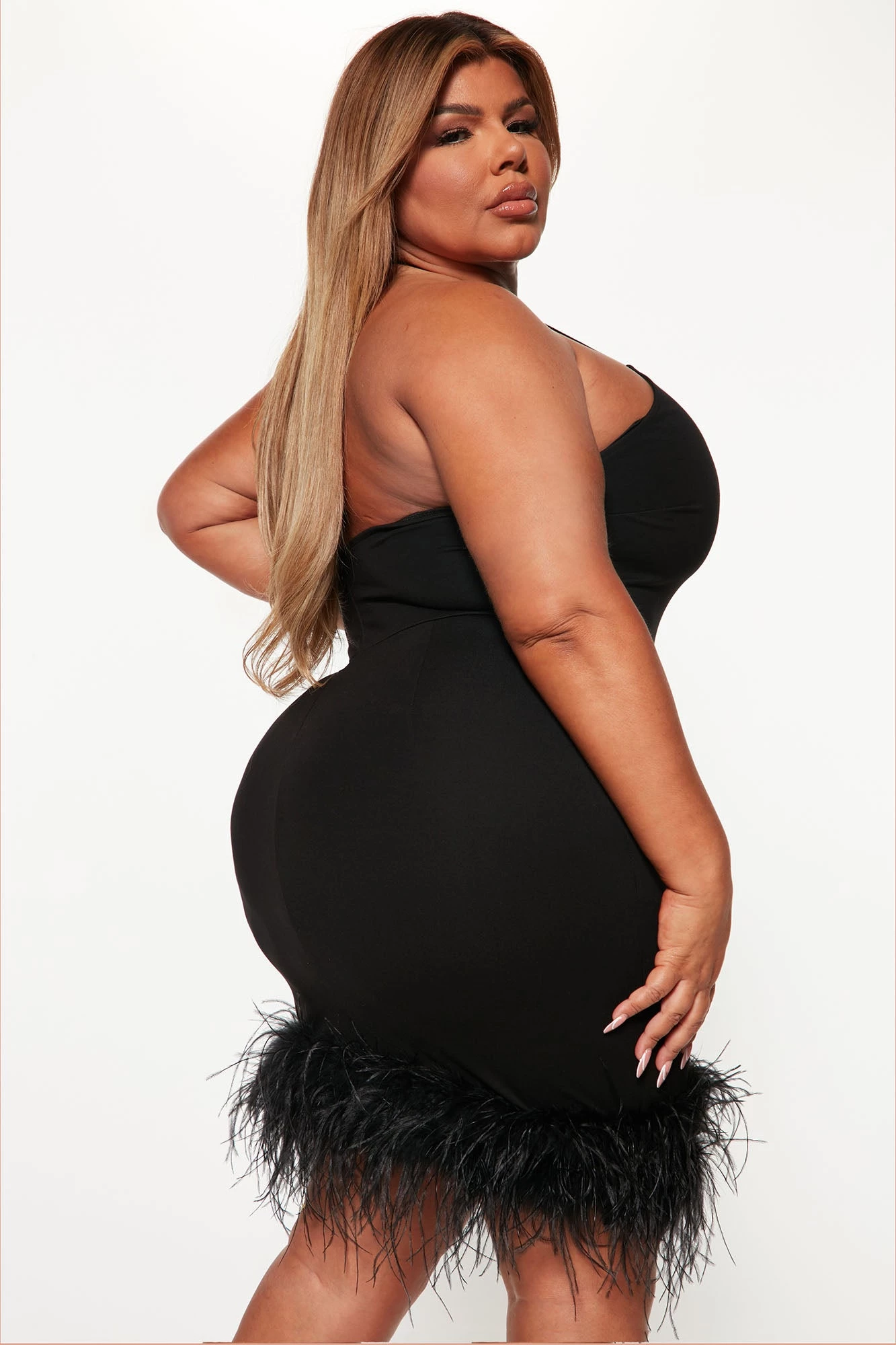 Fashion Nova Ari Feather Mini Dress – Black