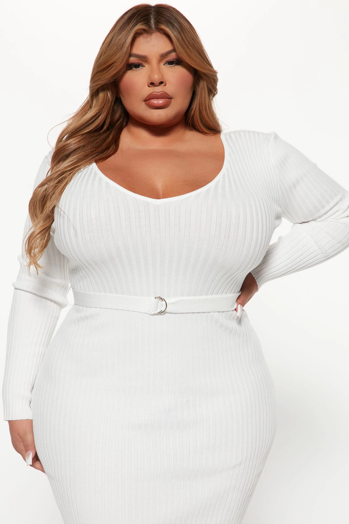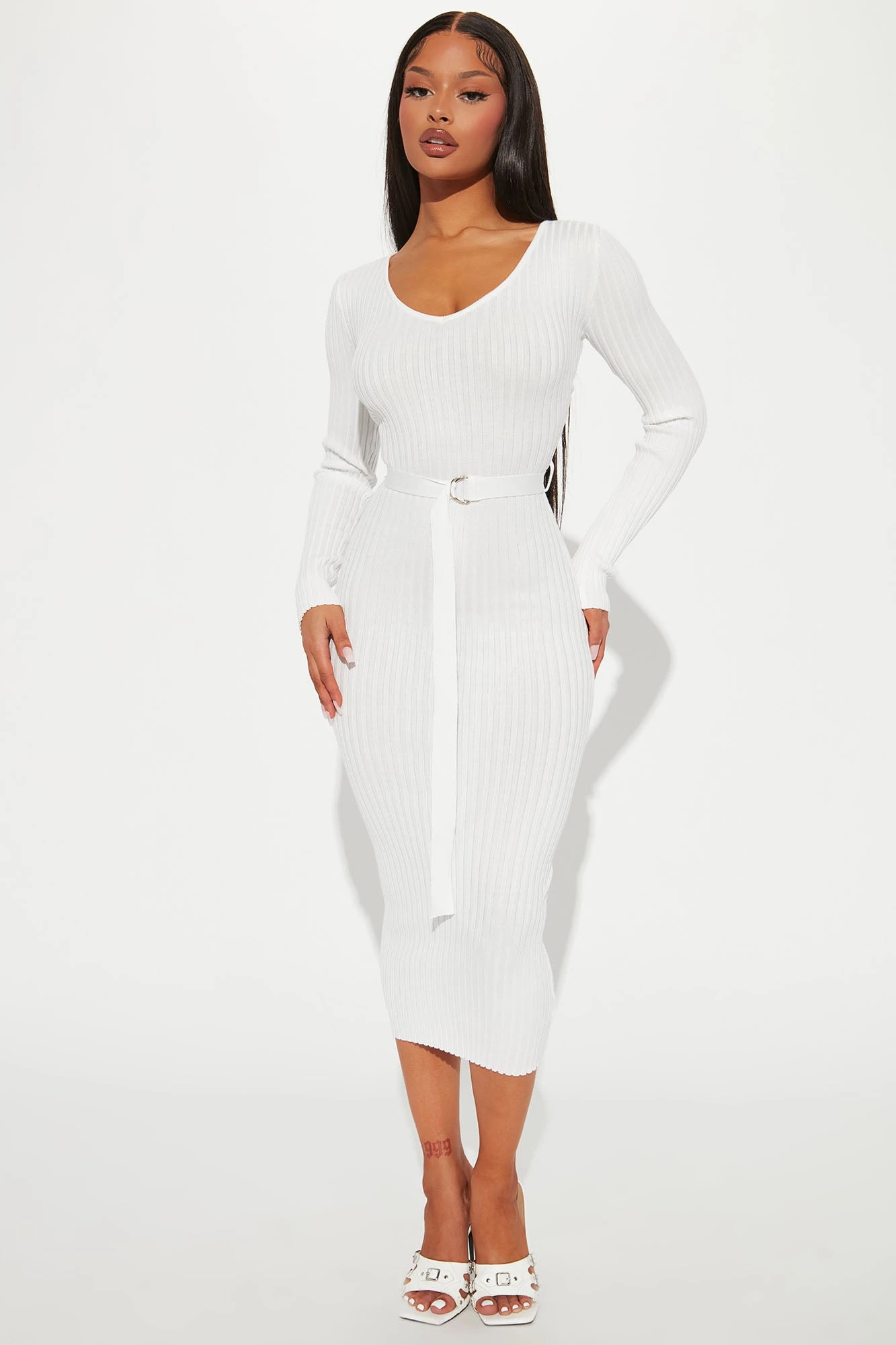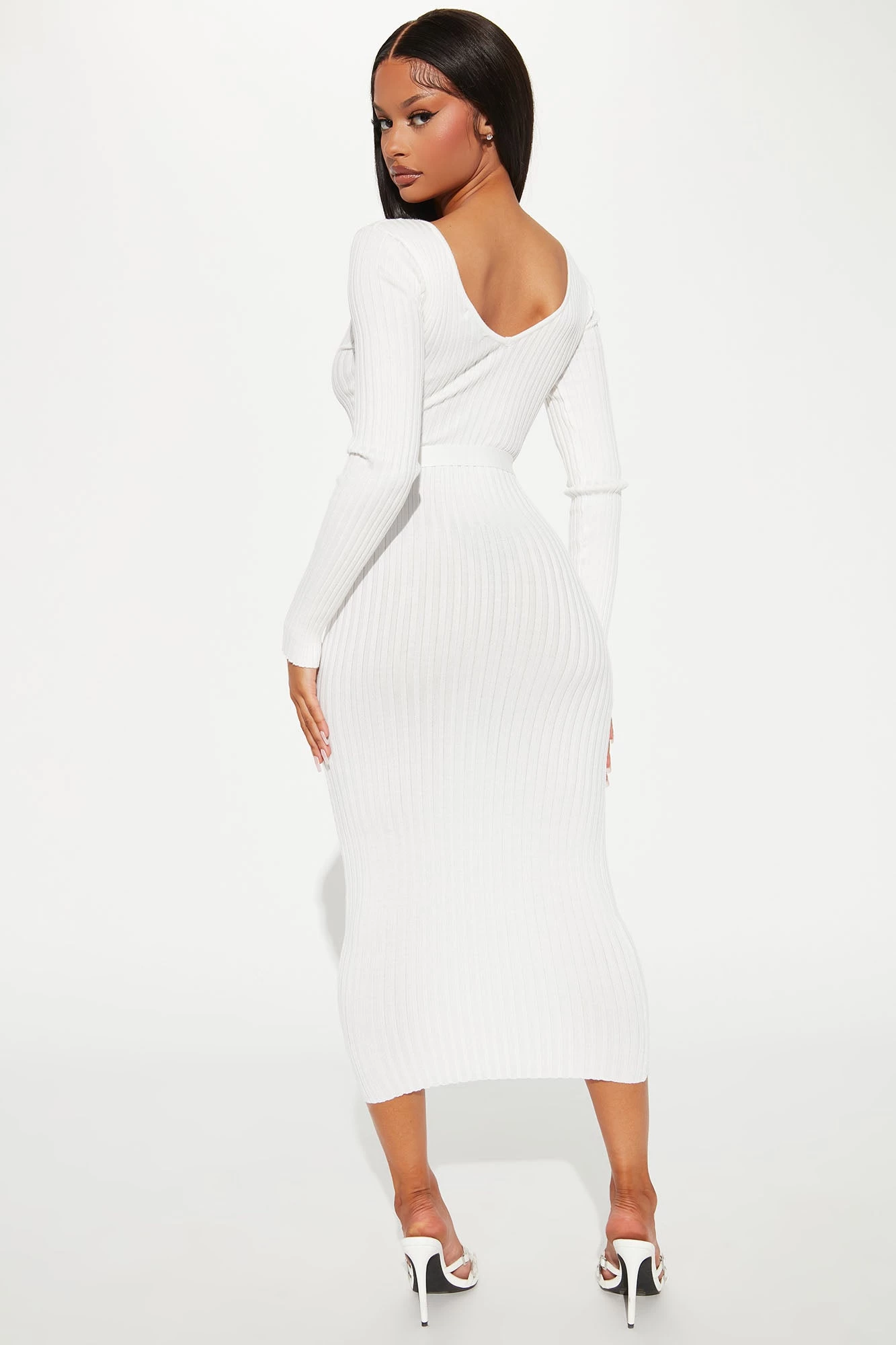 Fashion Nova Autumn Calls Sweater Midi Dress – Off White