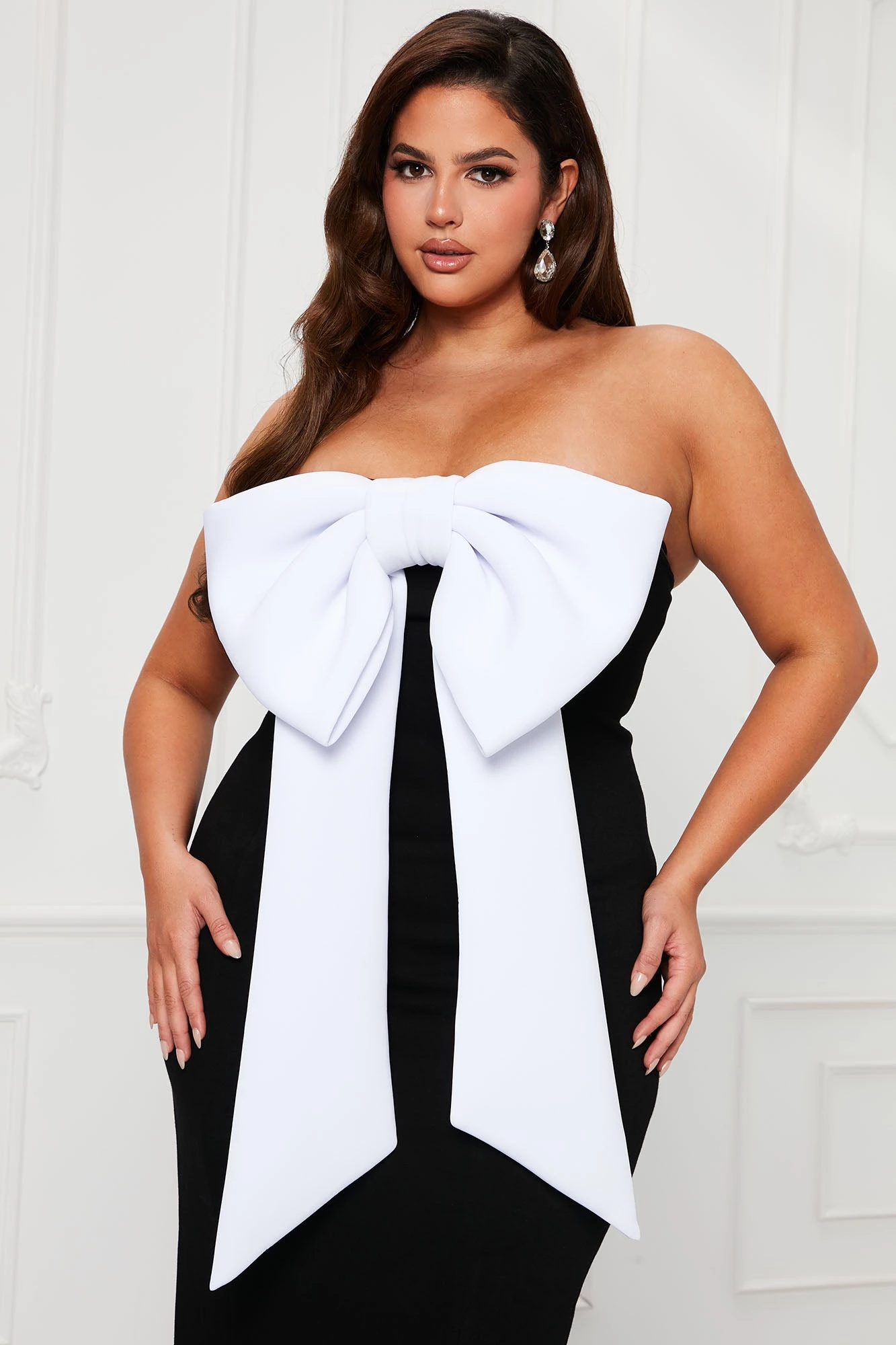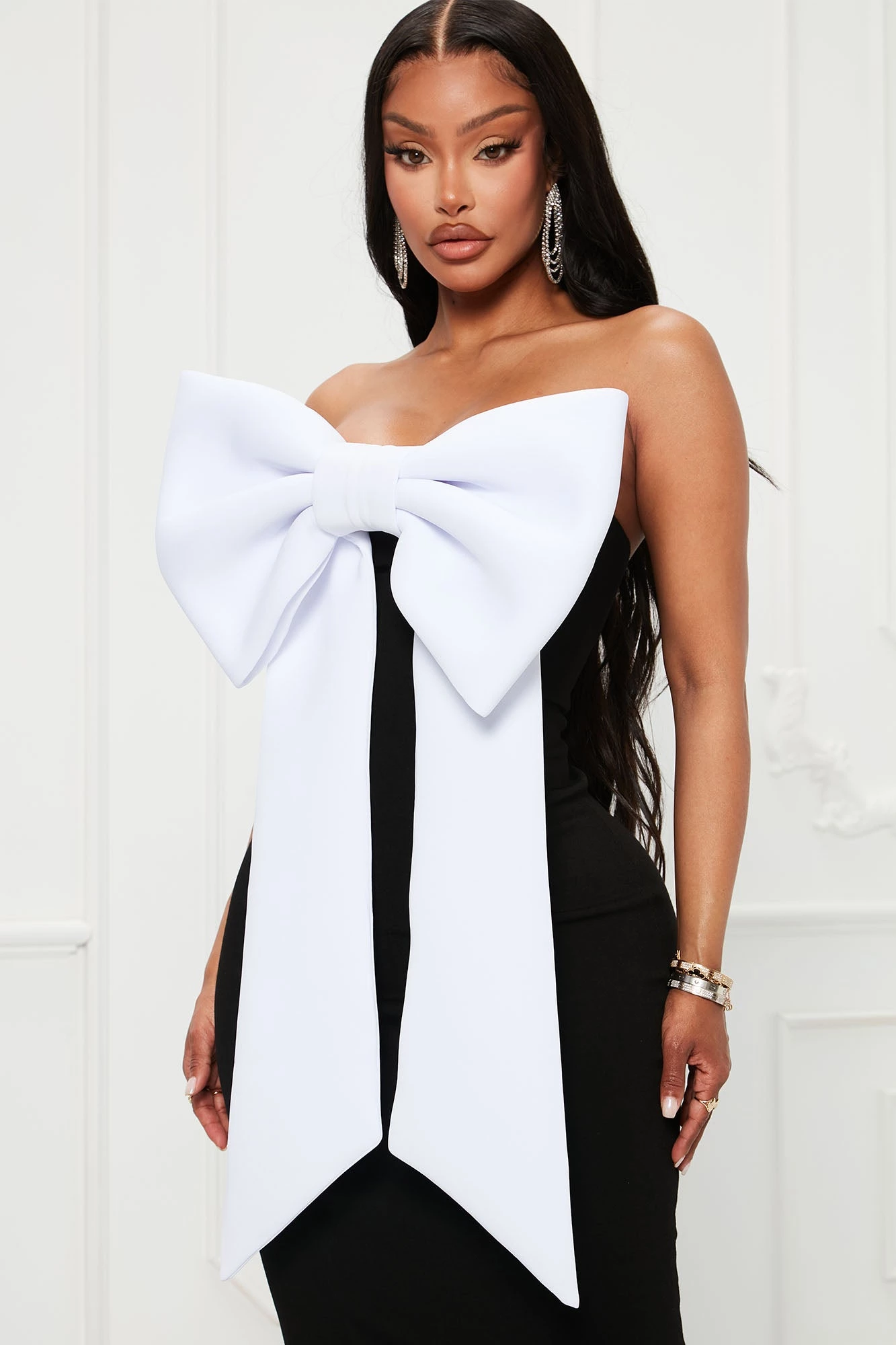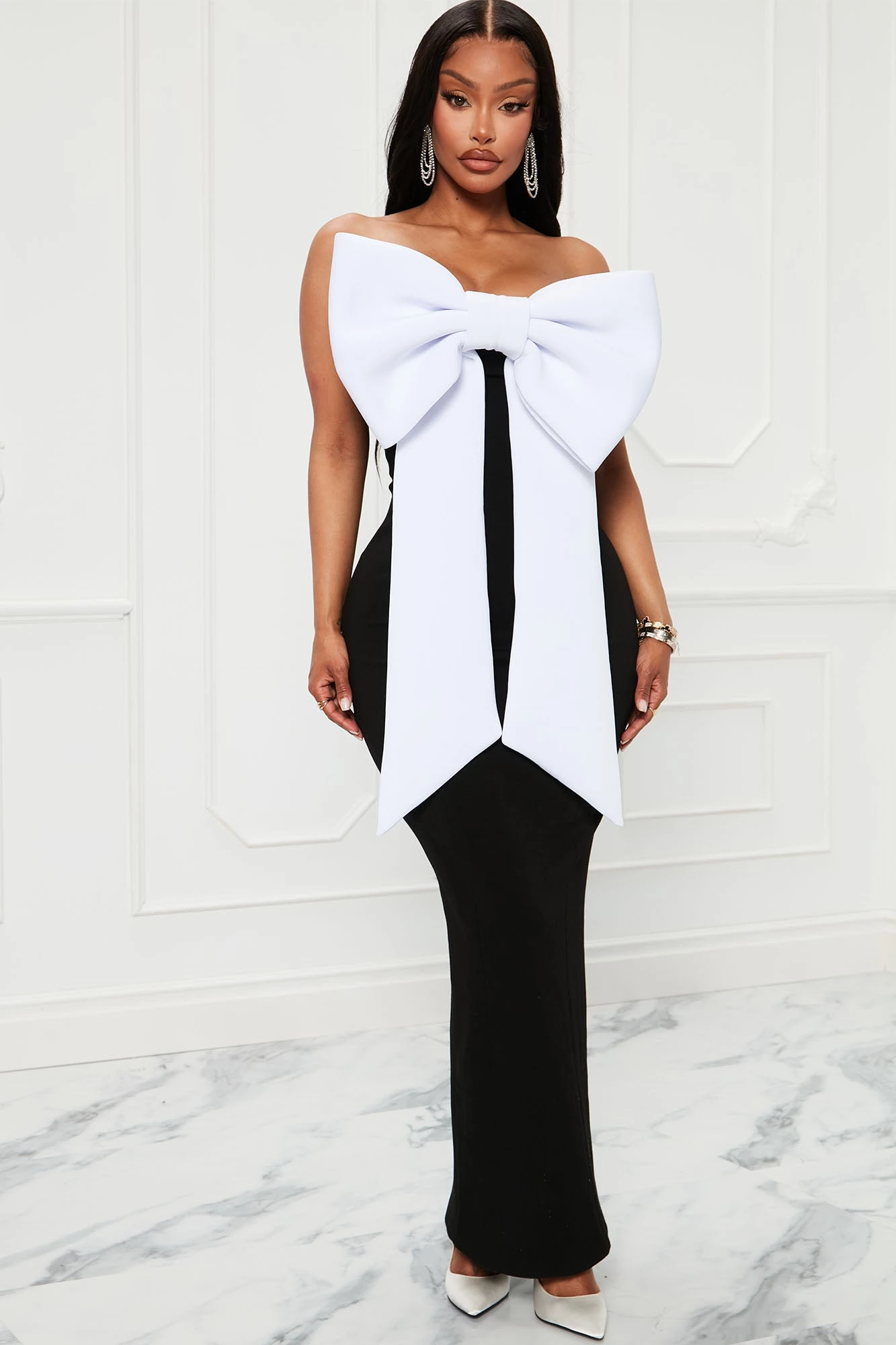 Fashion Nova Big Bow Energy Maxi Dress – Black/White