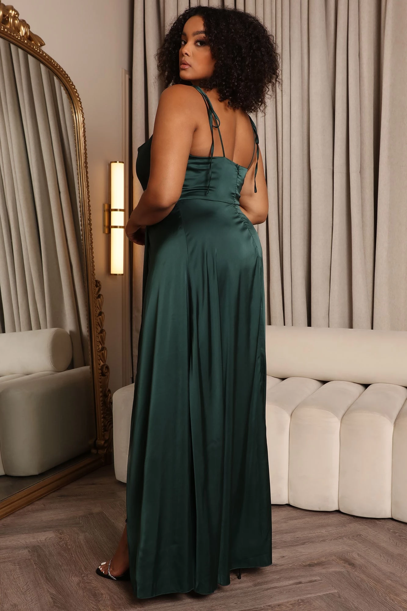 SKU: 6537115107452 Category: Maxi Dresses Tags: All Promo, atticket, color:Hunter, ColorFam-Green, detail:High Slit, Dresses, fabric:Satin, fallbogo, Homecoming