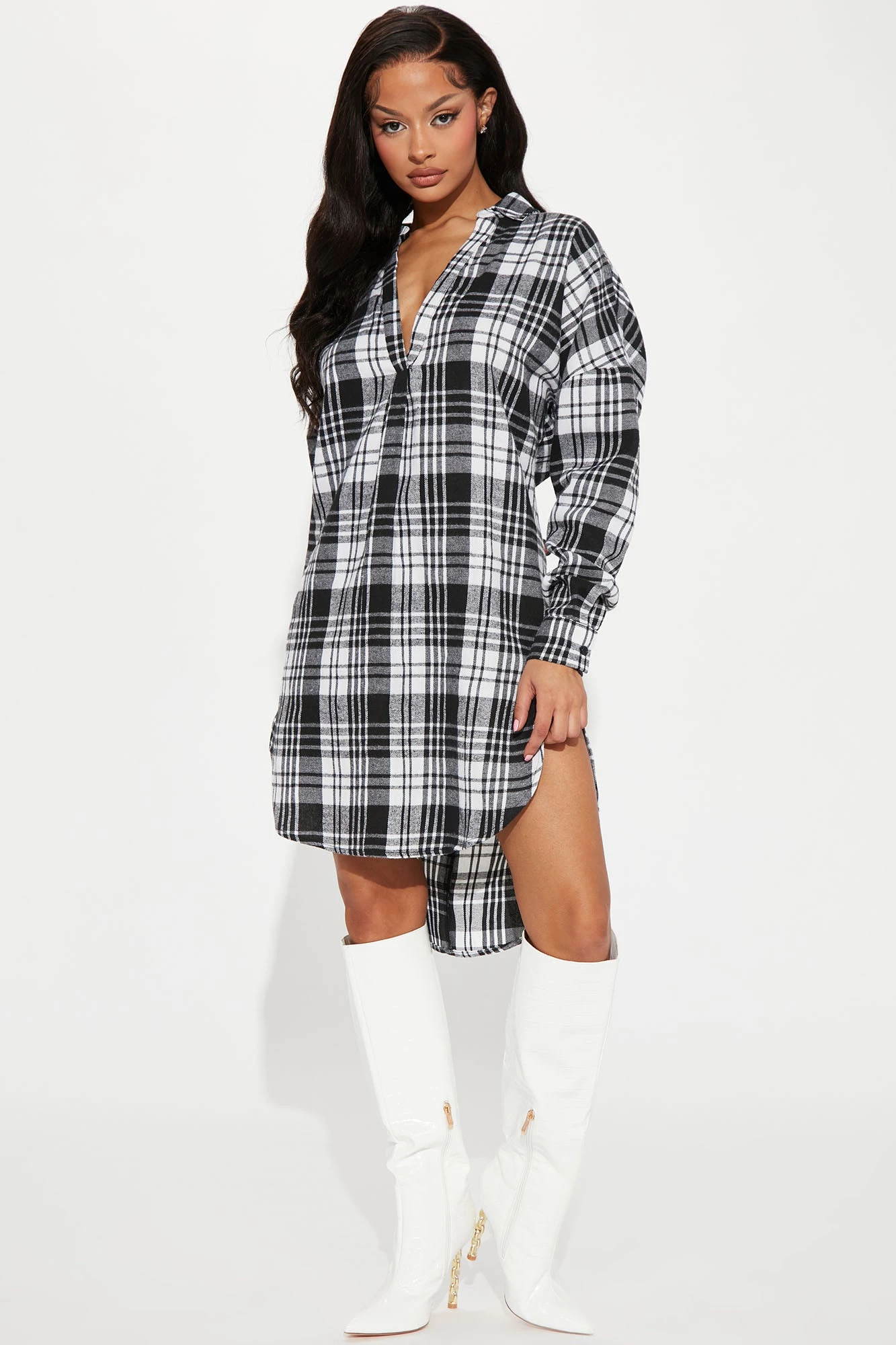 Fashion Nova Cabin Fever Flannel Midi Dress – Black/White