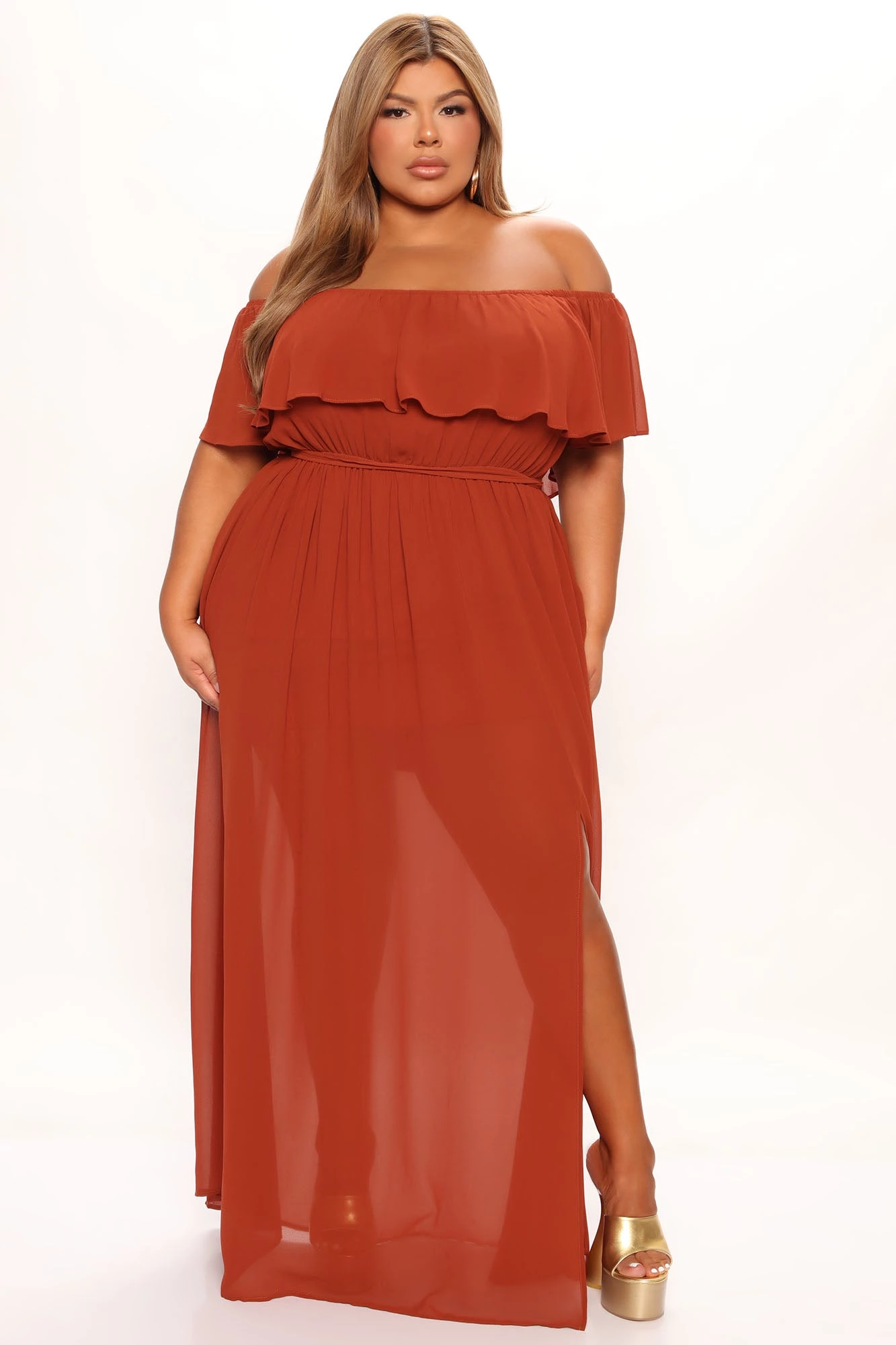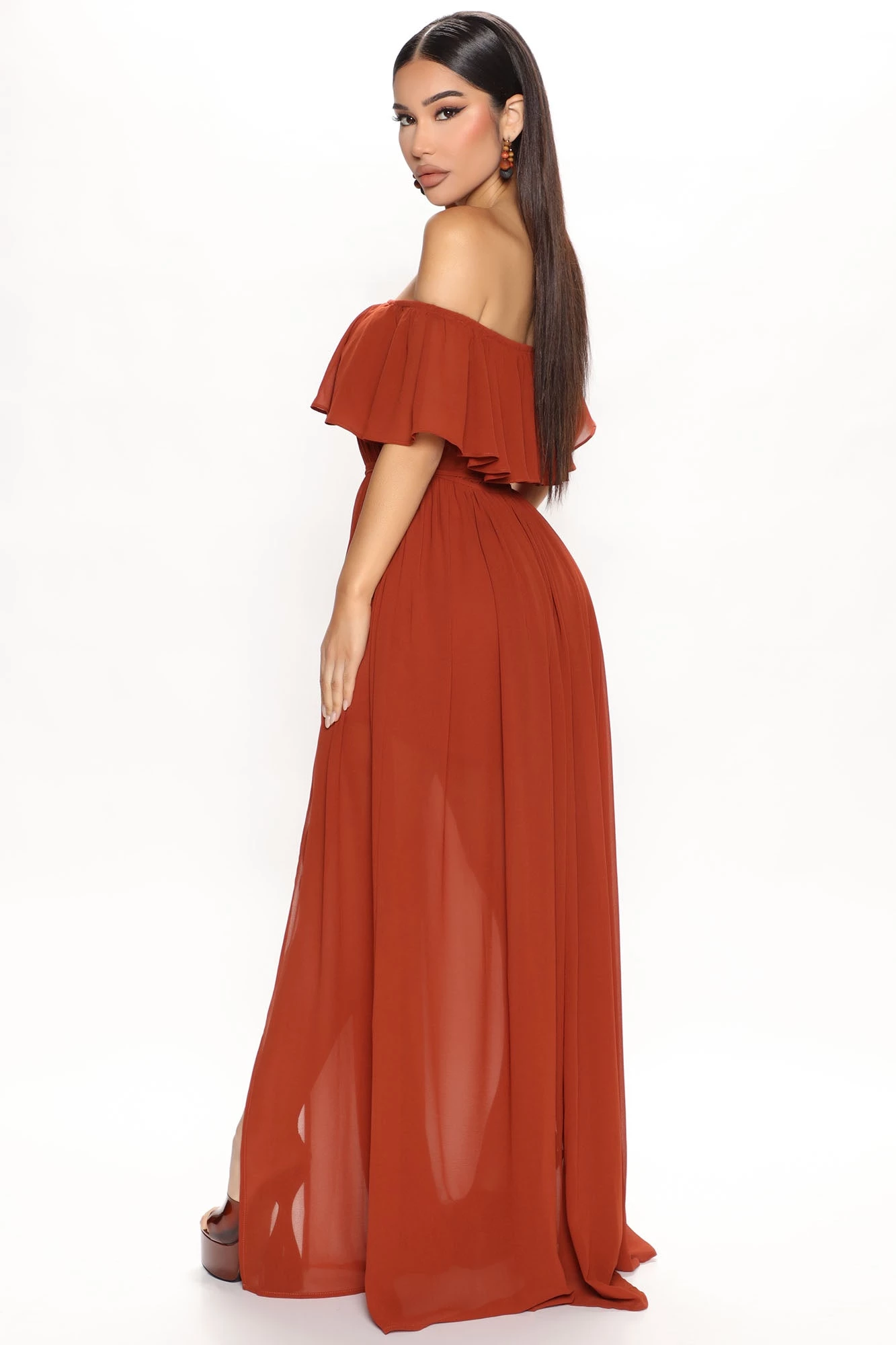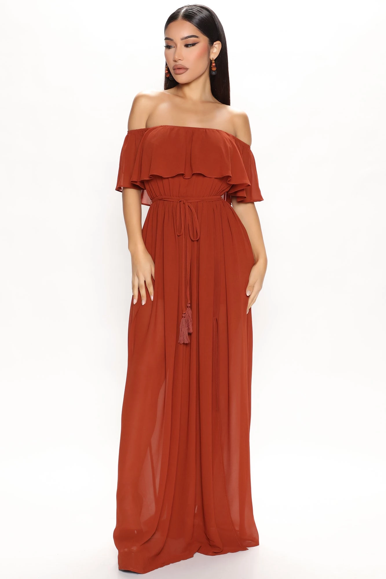 Fashion Nova Cabo Sunset Chiffon Maxi Dress – Rust