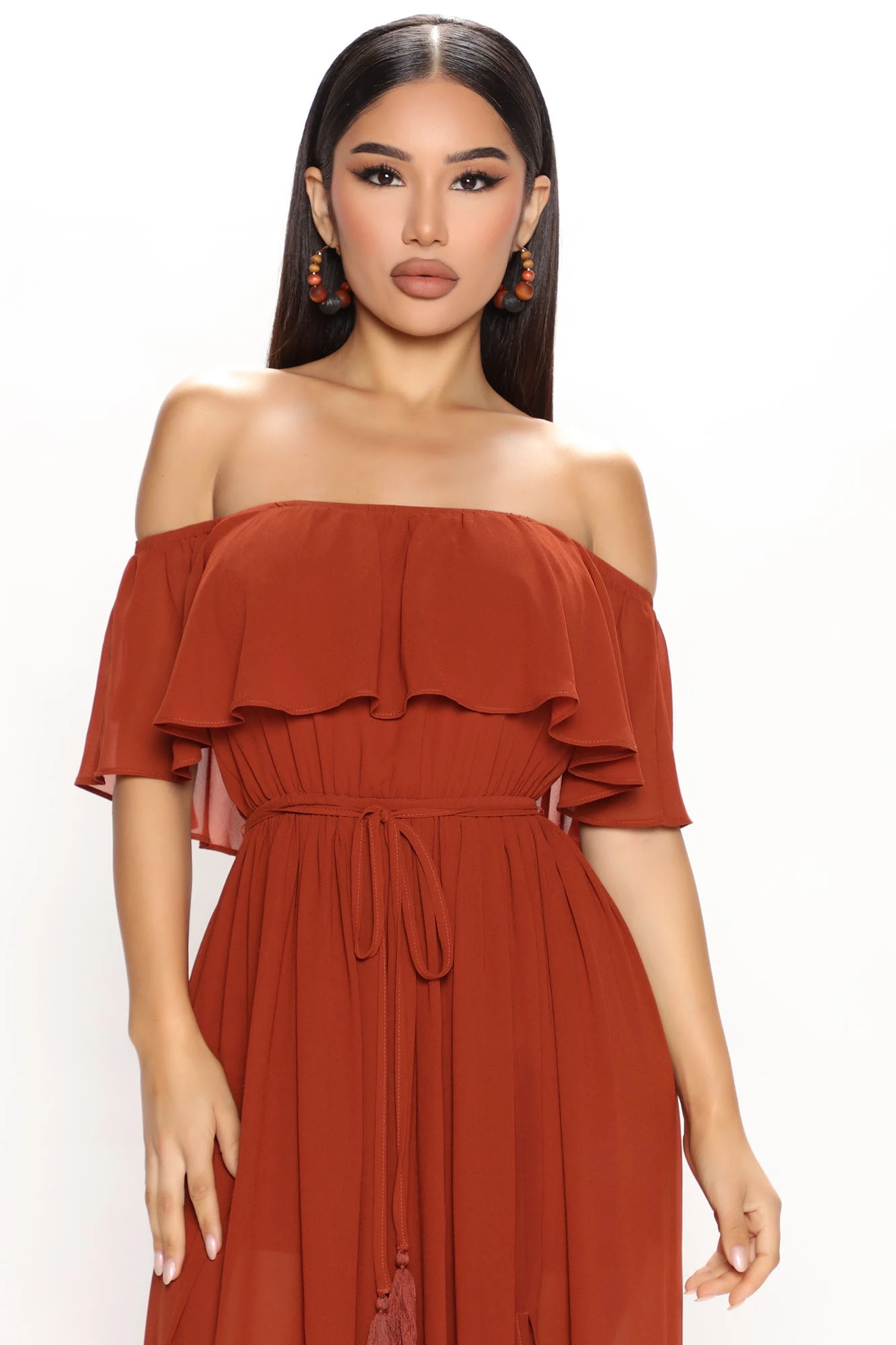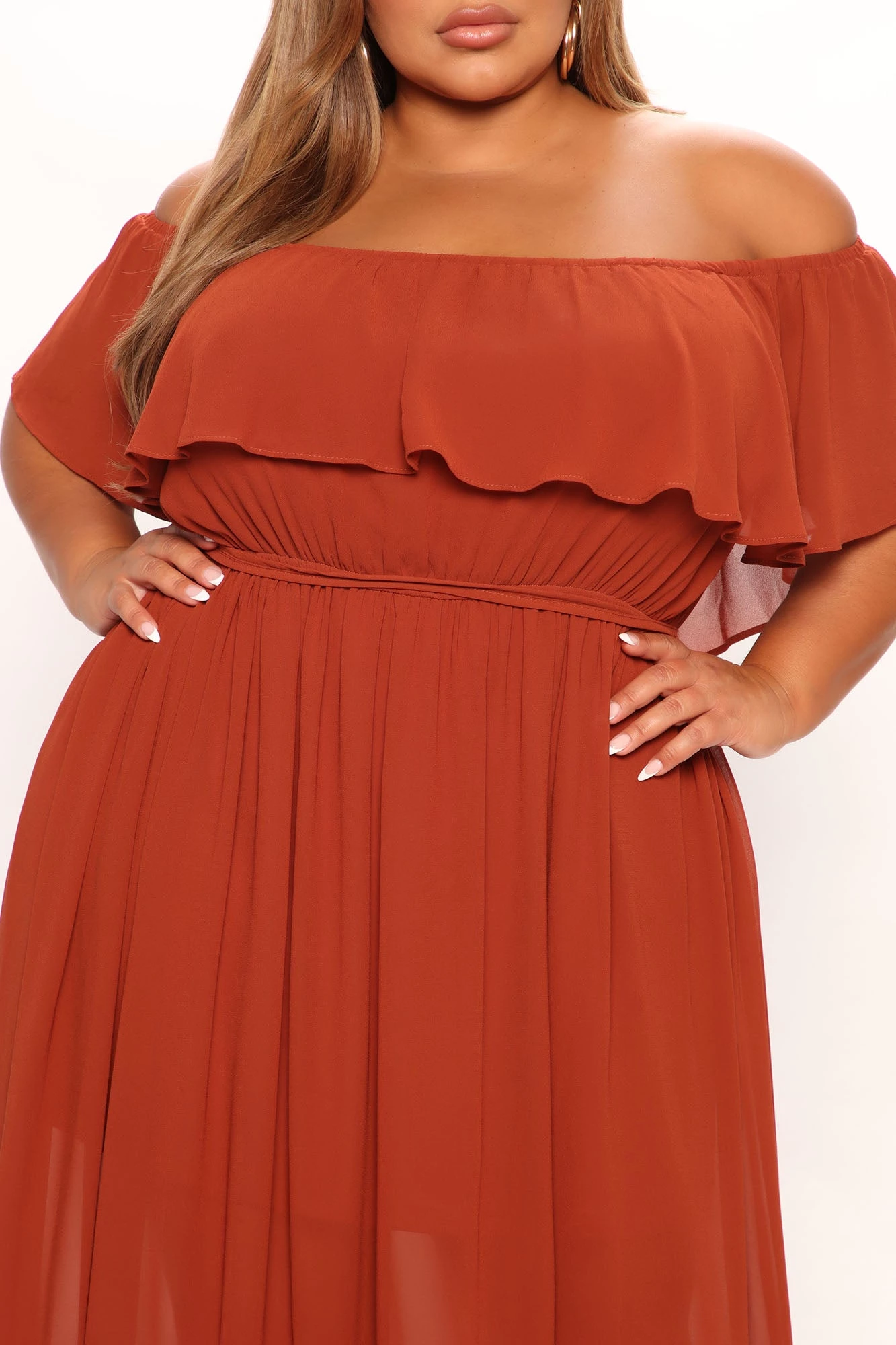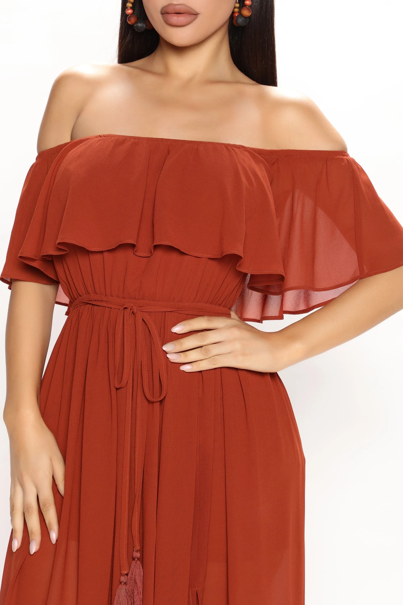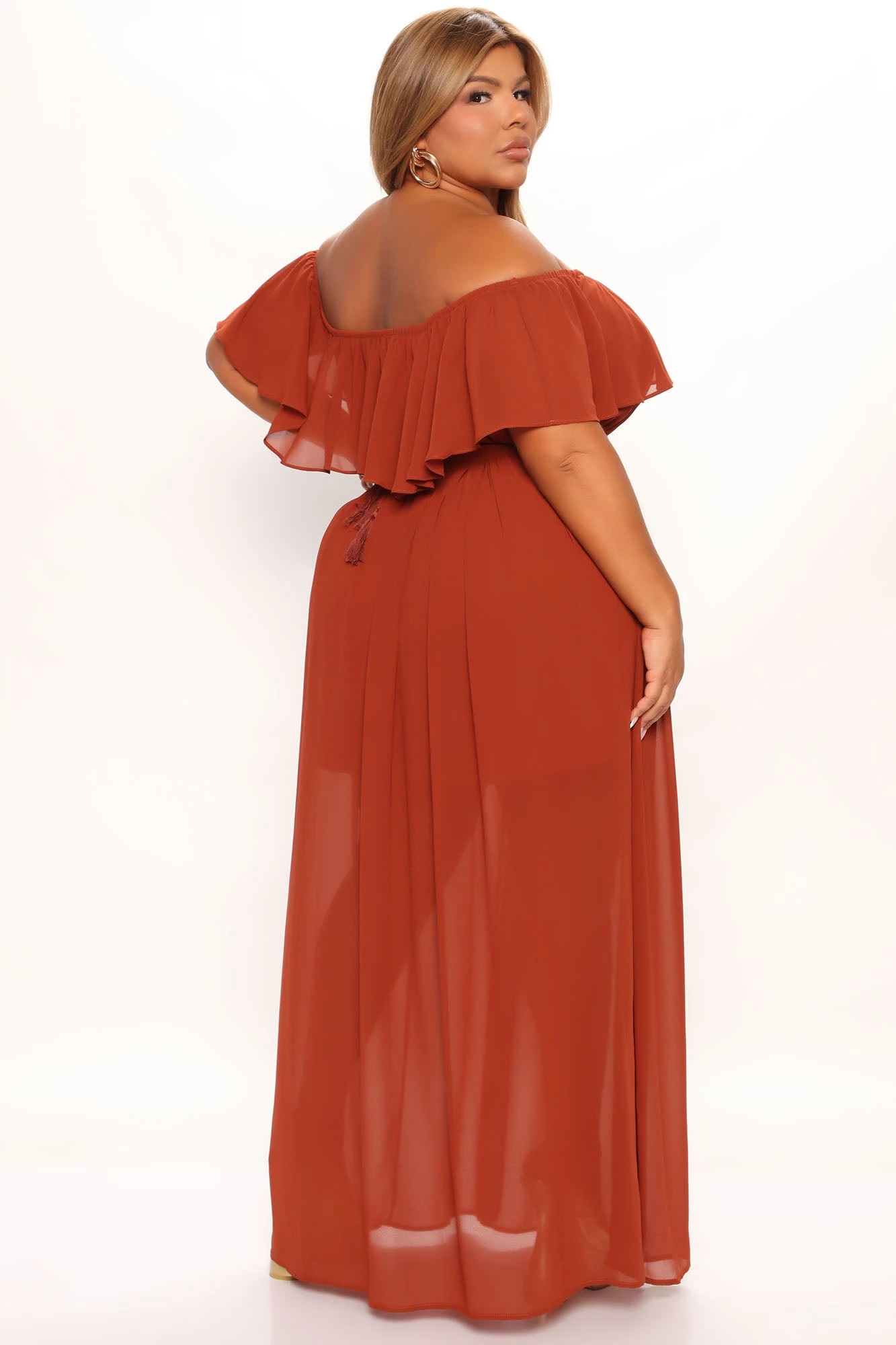 Fashion Nova Cabo Sunset Chiffon Maxi Dress – Rust