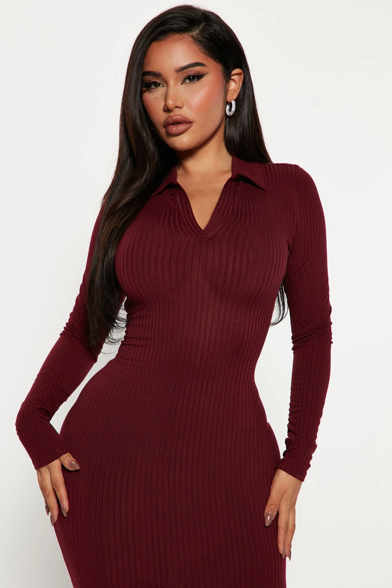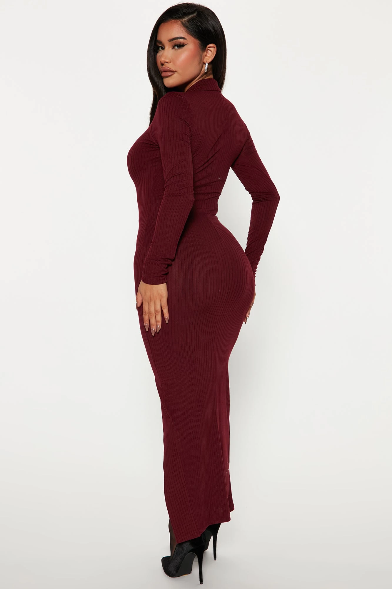 Fashion Nova Cali Ribbed Maxi Dress – Wine