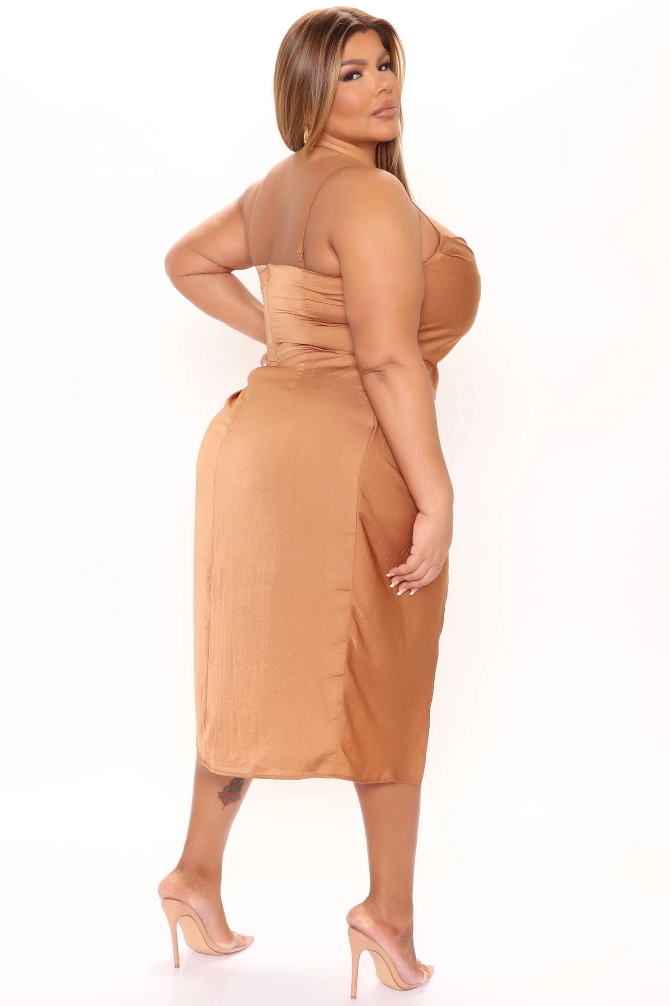 Fashion Nova Casie Satin Midi Dress – Brown