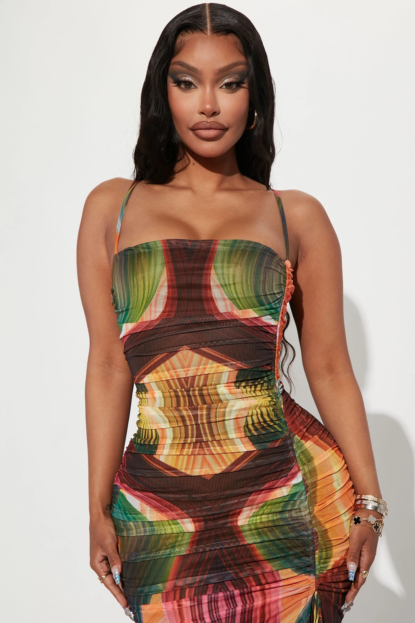 Fashion Nova Caught In A Dream Midi Dress – Orange/combo