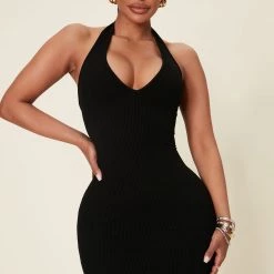 Fashion Nova Celeste Snatched Halter Mini Dress – Black