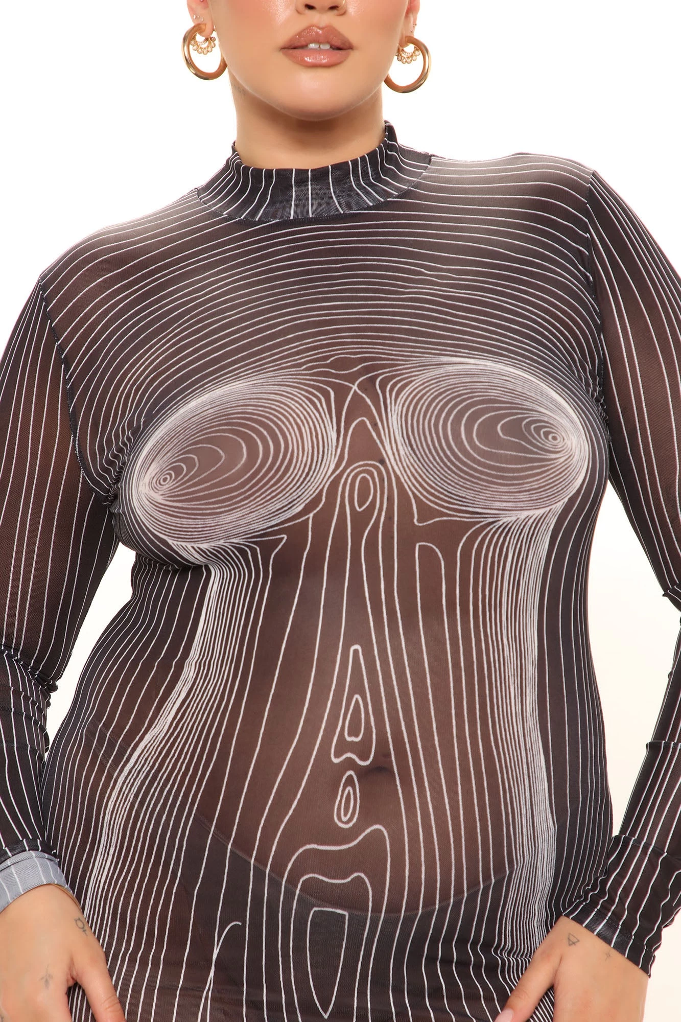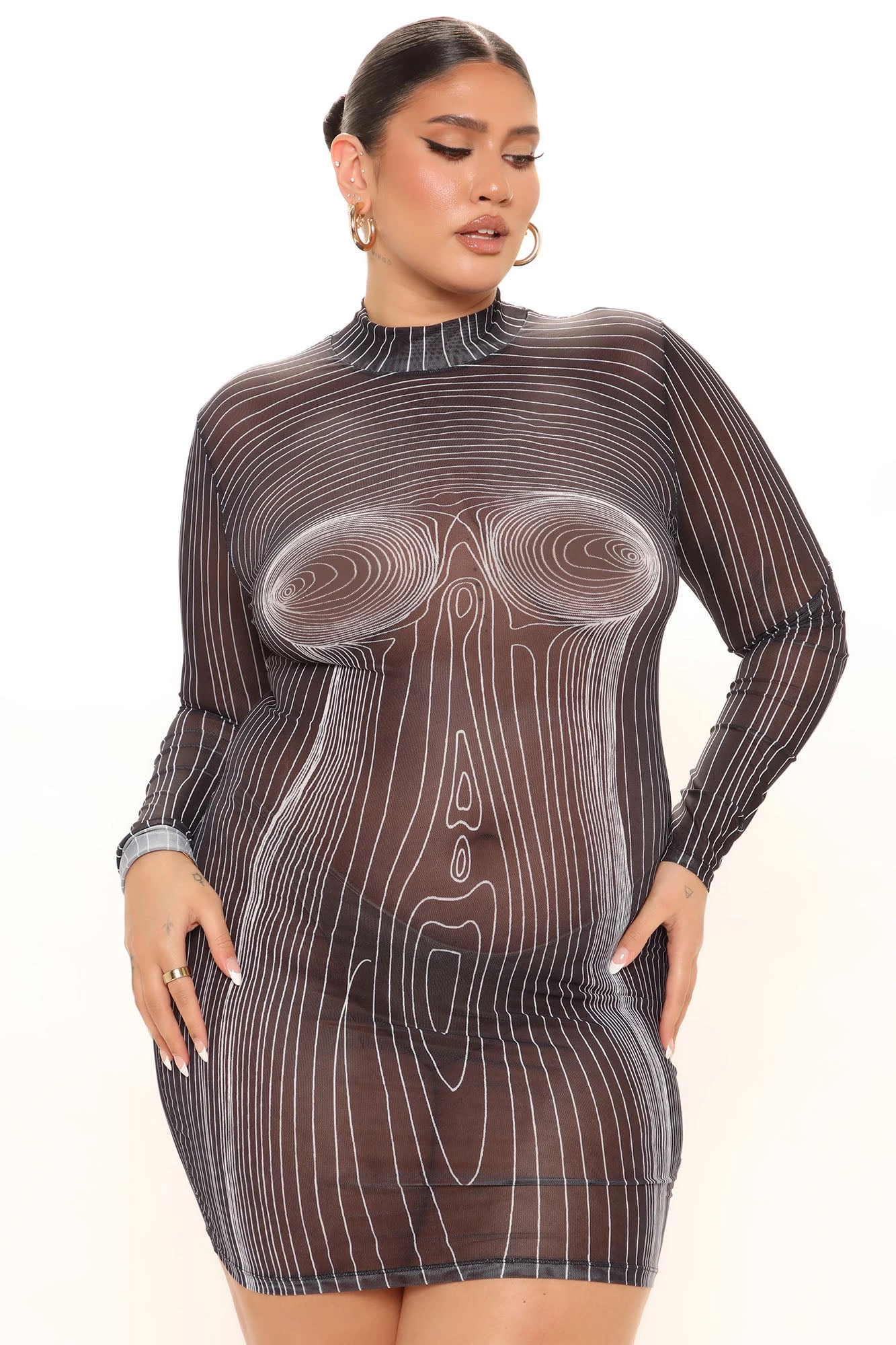Fashion Nova Centerpiece Mesh Mini Dress – Black/combo