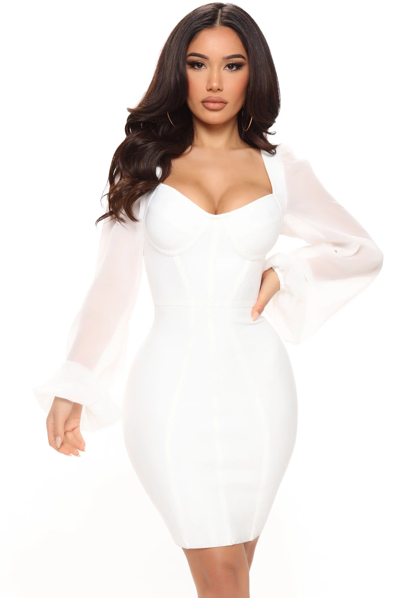Fashion Nova Cheerful Mood Bandage Mini Dress – White