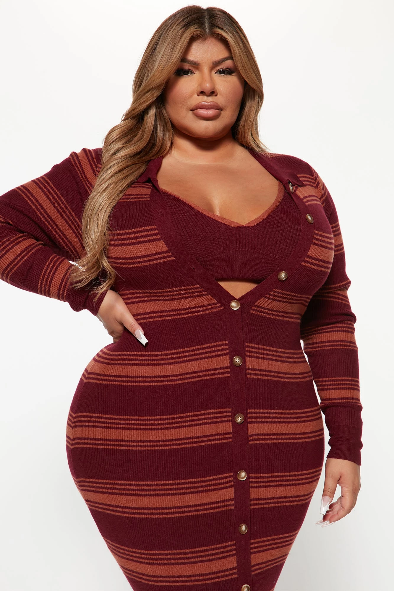 Fashion Nova Chill Day Sweater Midi Dress Set – Wine/combo