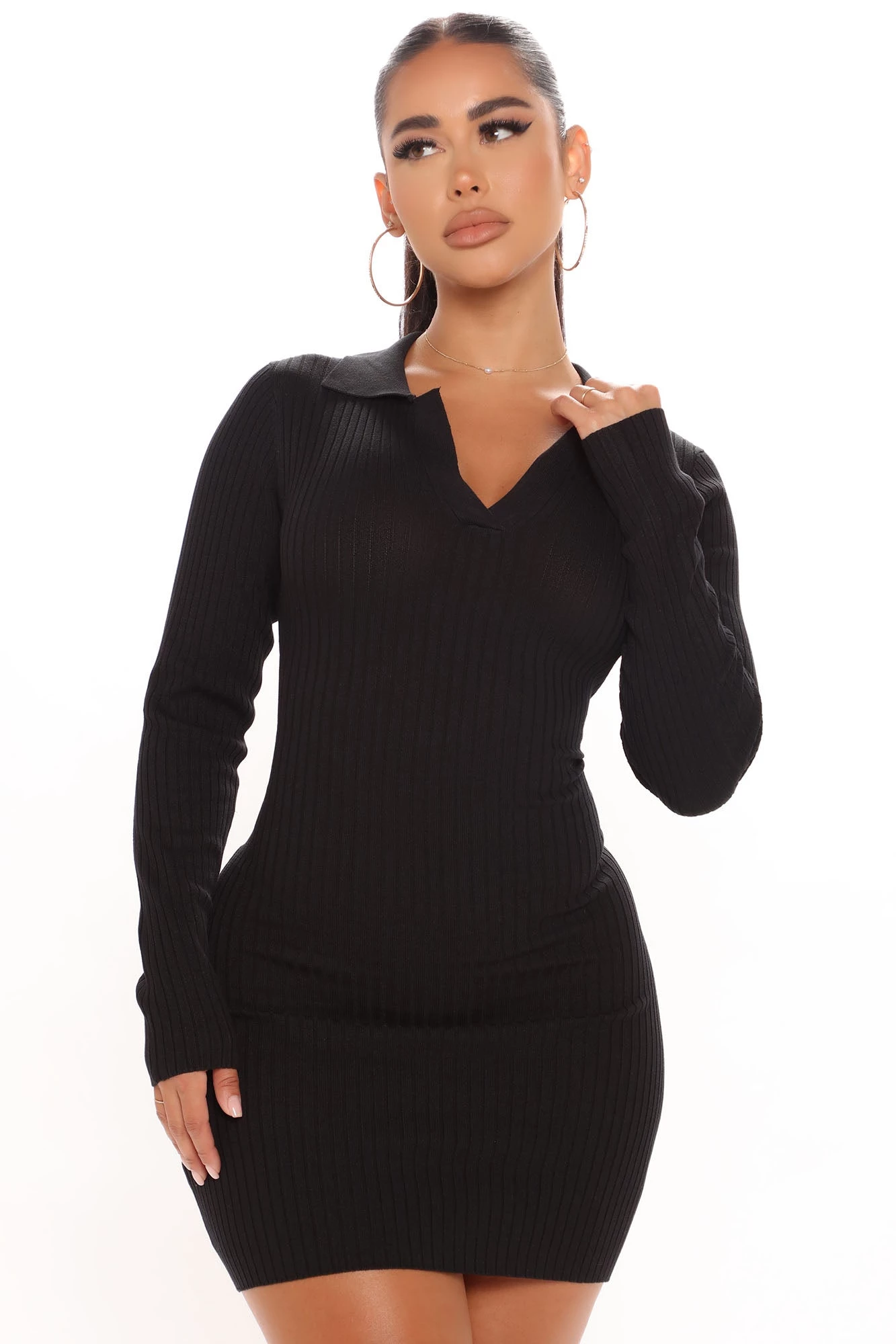 Fashion Nova City Girl Necessity Sweater Mini Dress – Black
