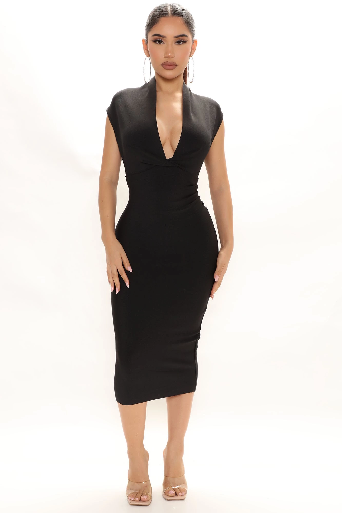 Be the first to review “Fashion Nova Classic Bandage Midi Dress – Black” Cancel reply