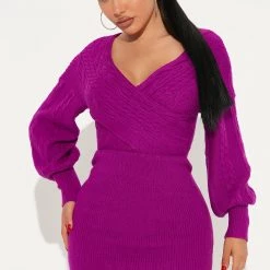 Fashion Nova Coffee Run Sweater Mini Dress – Magenta