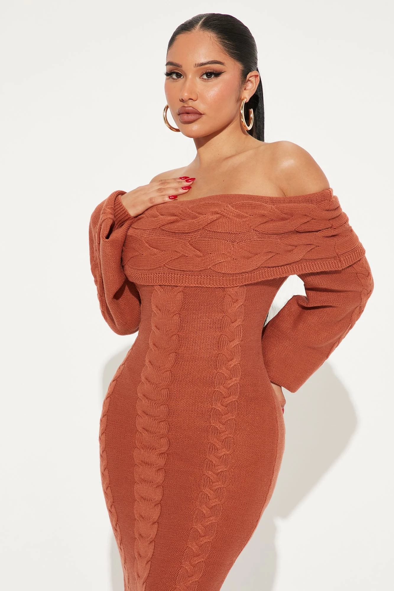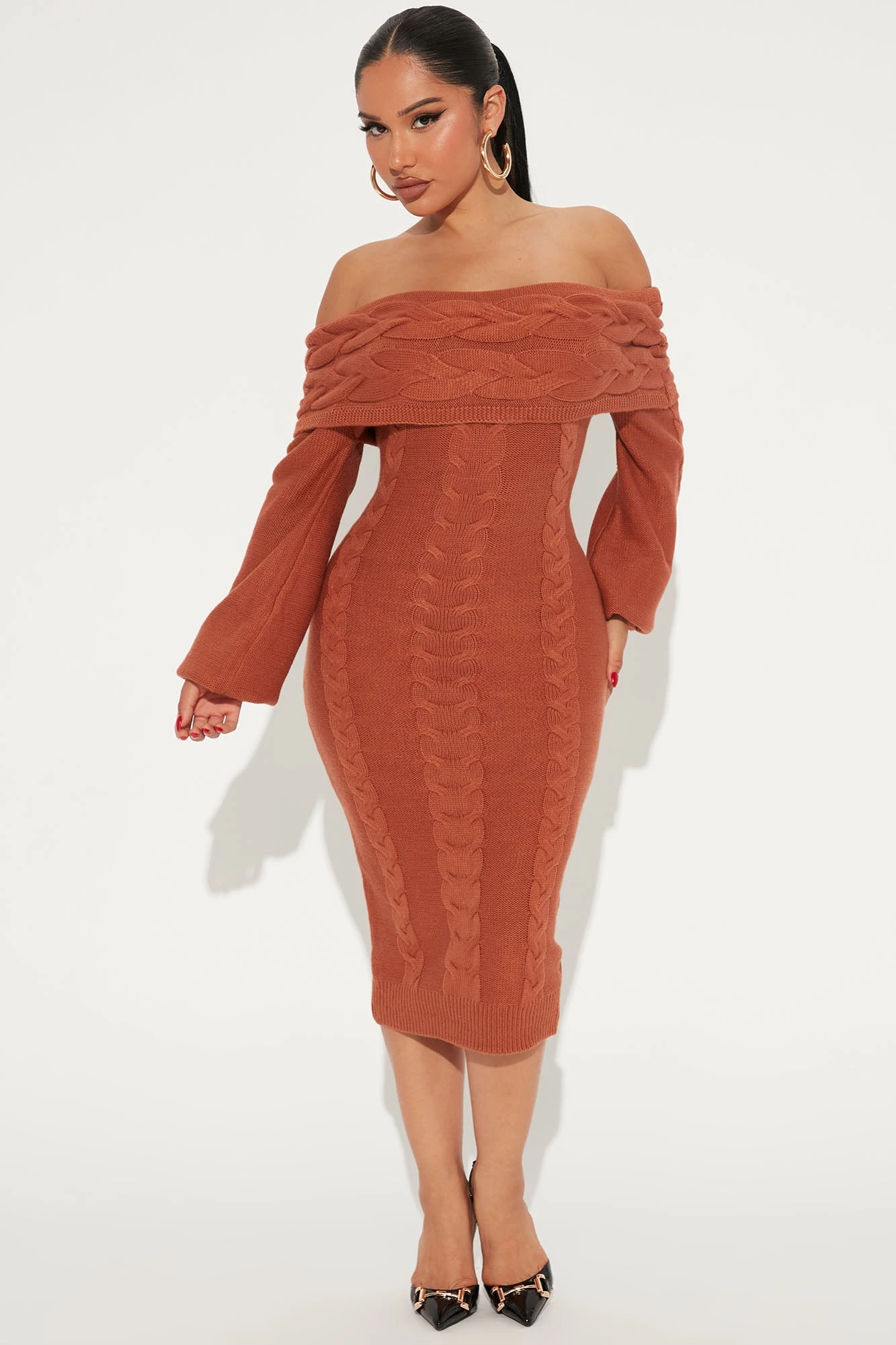 Fashion Nova Cozy Moments Sweater Dress – Cognac