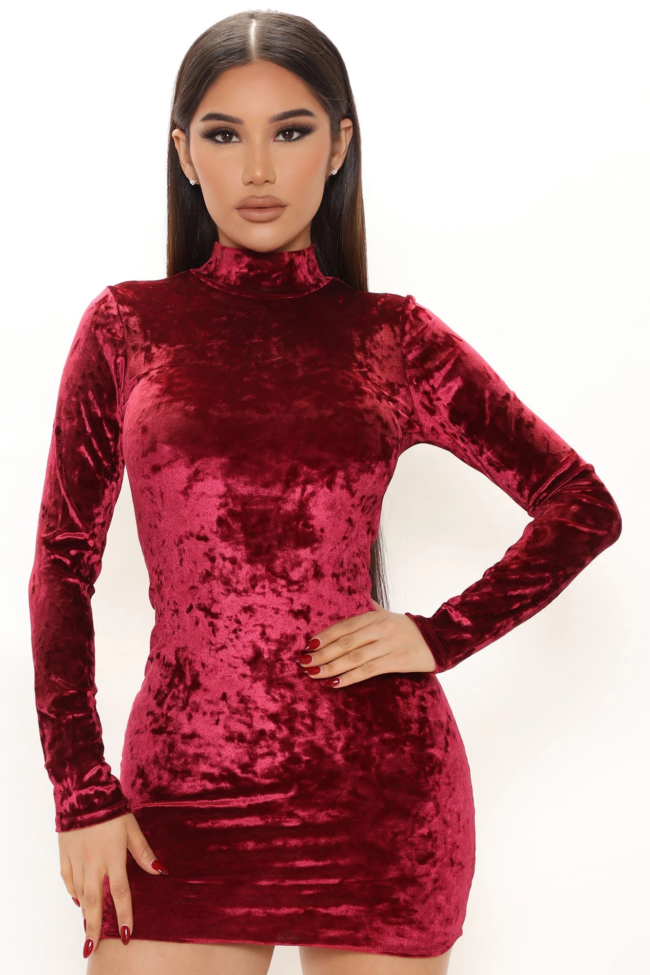 Fashion Nova Crushing It Velvet Mini Dress – Wine