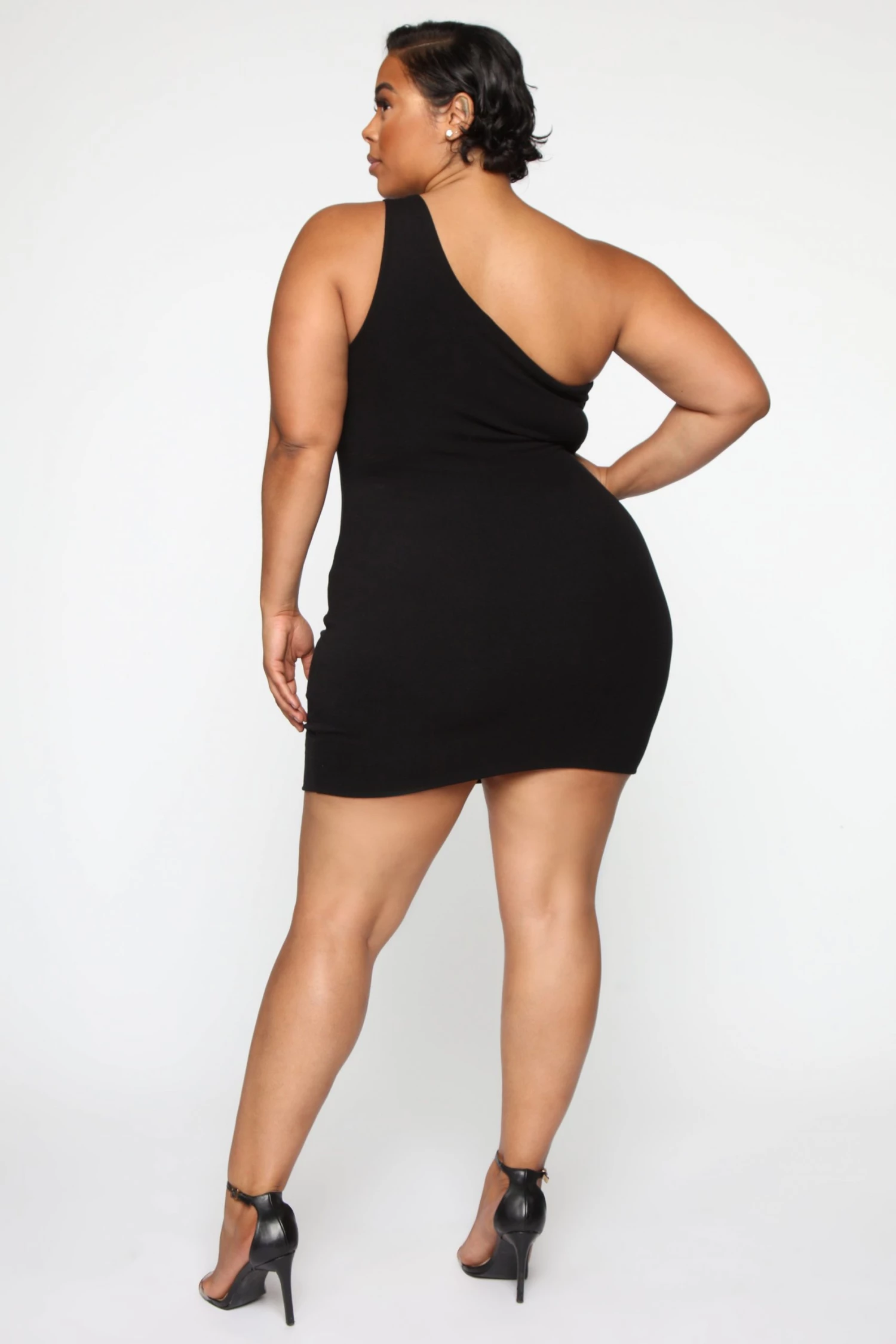 Fashion Nova Cut Me In One Shoulder Mini Dress – Black
