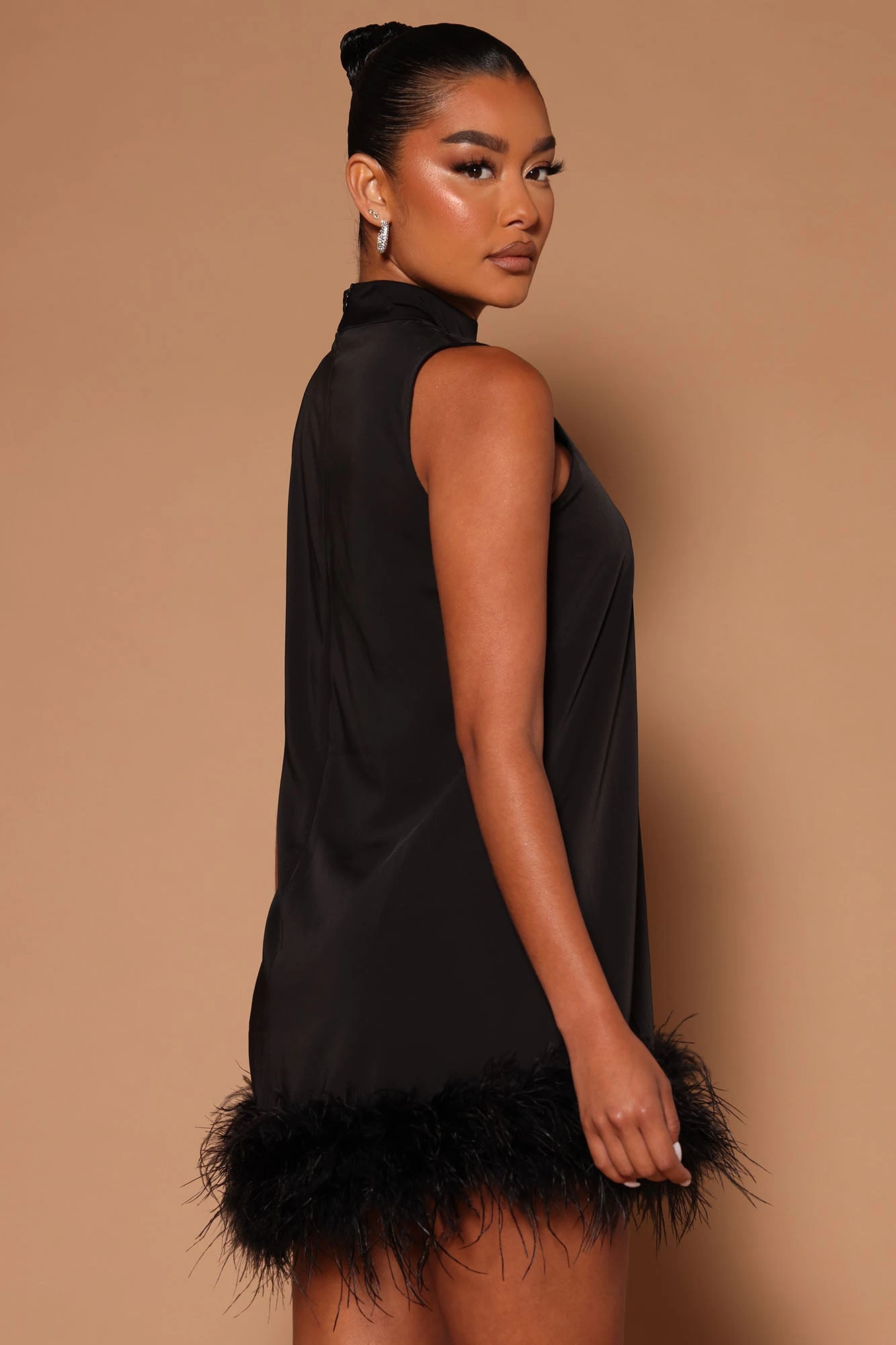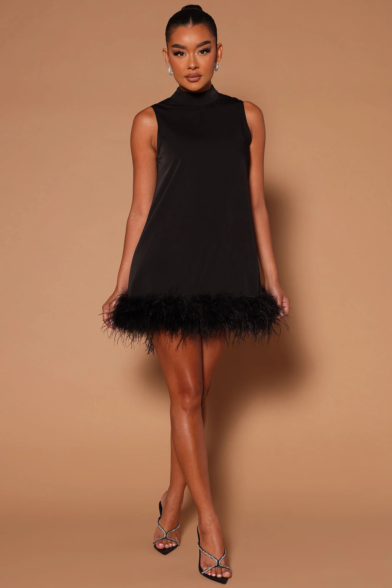 Fashion Nova Delia Feather Trim Mini Dress – Black