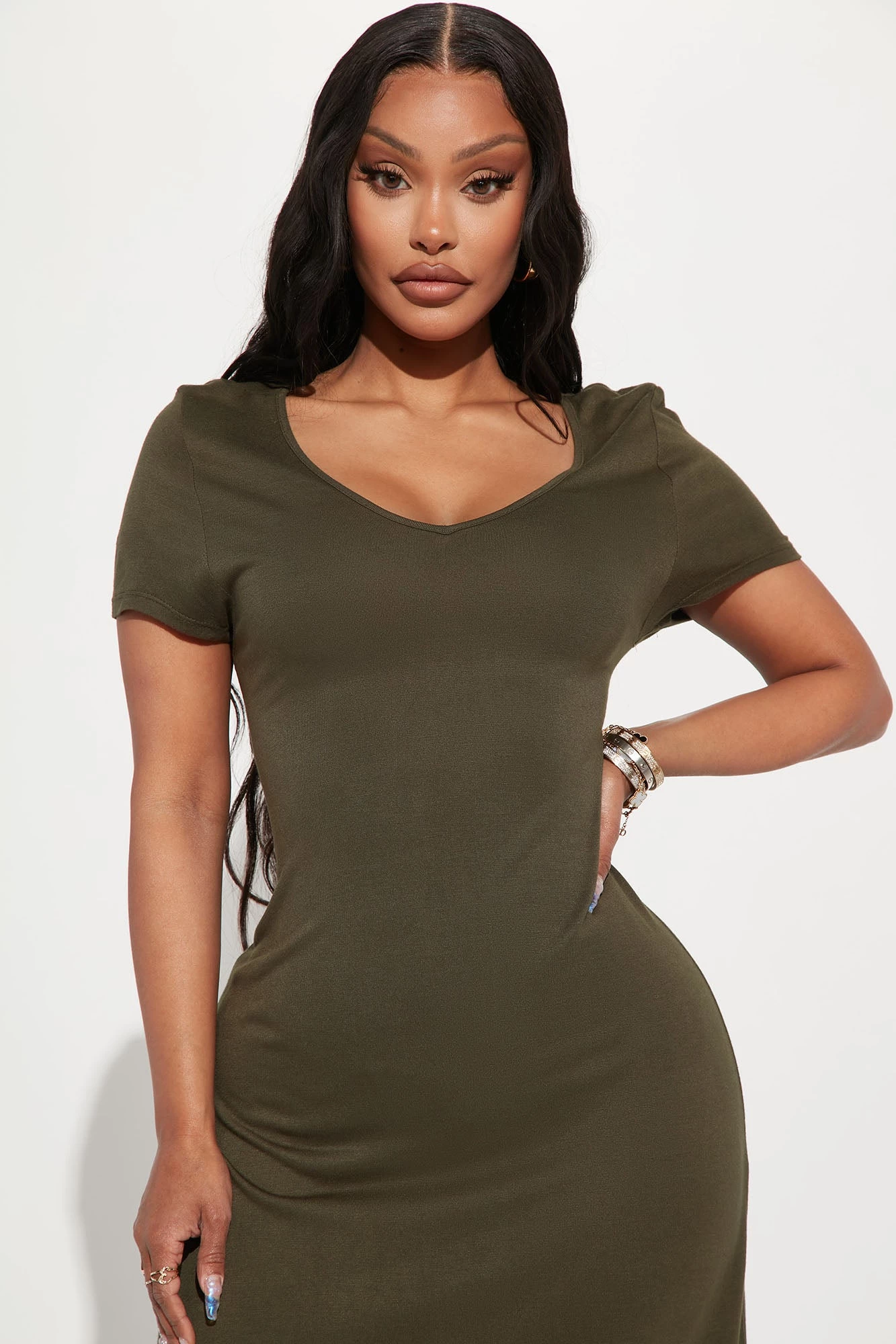 SKU: 6537573269628 Category: Midi Dresses Tags: All Promo, casualdresses, color:Olive, ColorFam-Green, Dresses, length:Midi, Midi, neckline:V Neck, New Arrivals