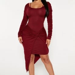 SKU: 6537529557116 Category: Midi Dresses Tags: All Promo, casualdresses, color:Burgundy, ColorFam-Red, Dresses, fallbogo, length:Midi, Long Sleeve, Midi