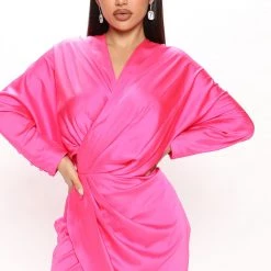 Fashion Nova Diva Treatment Satin Mini Dress – Hot Pink