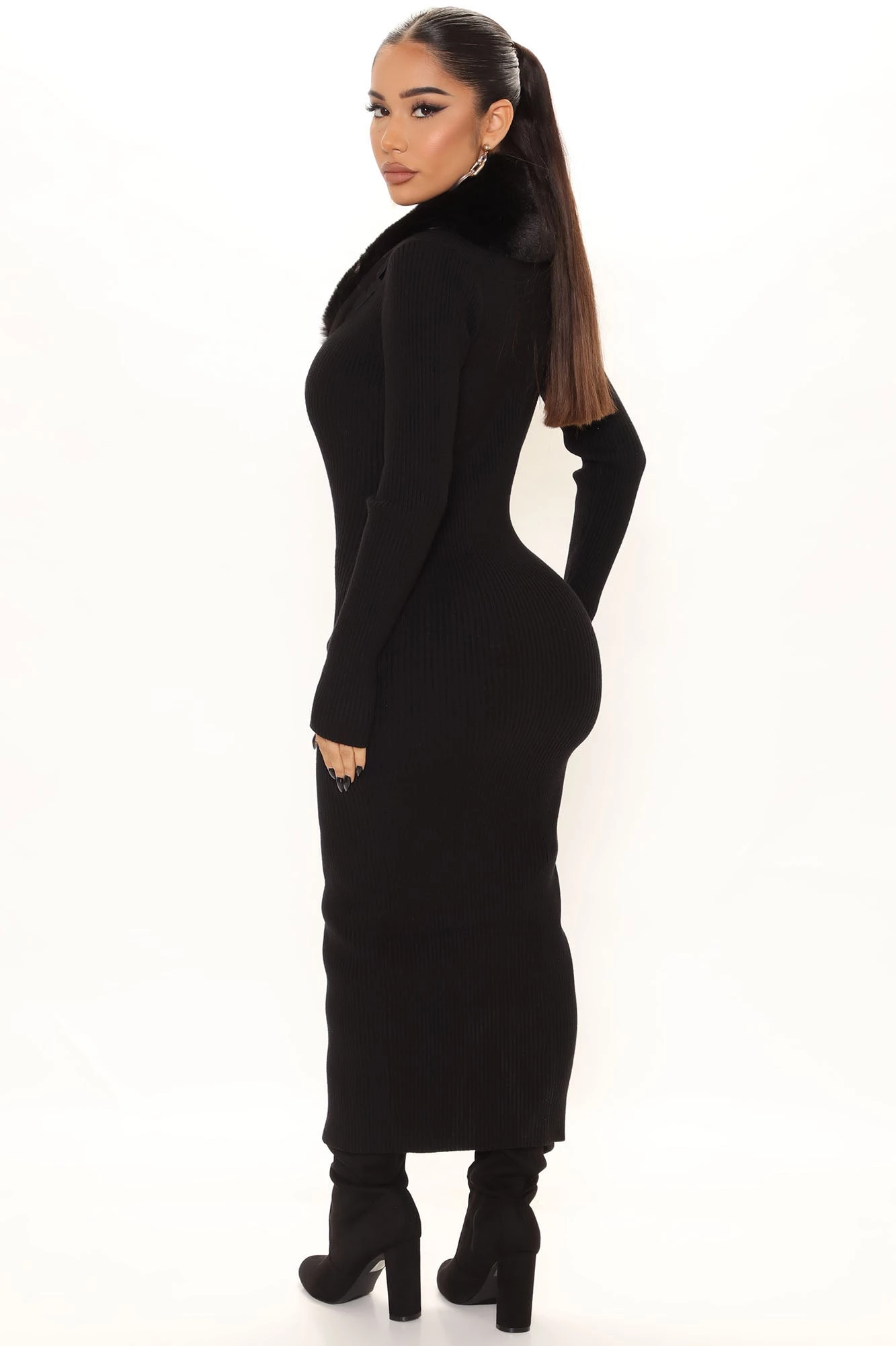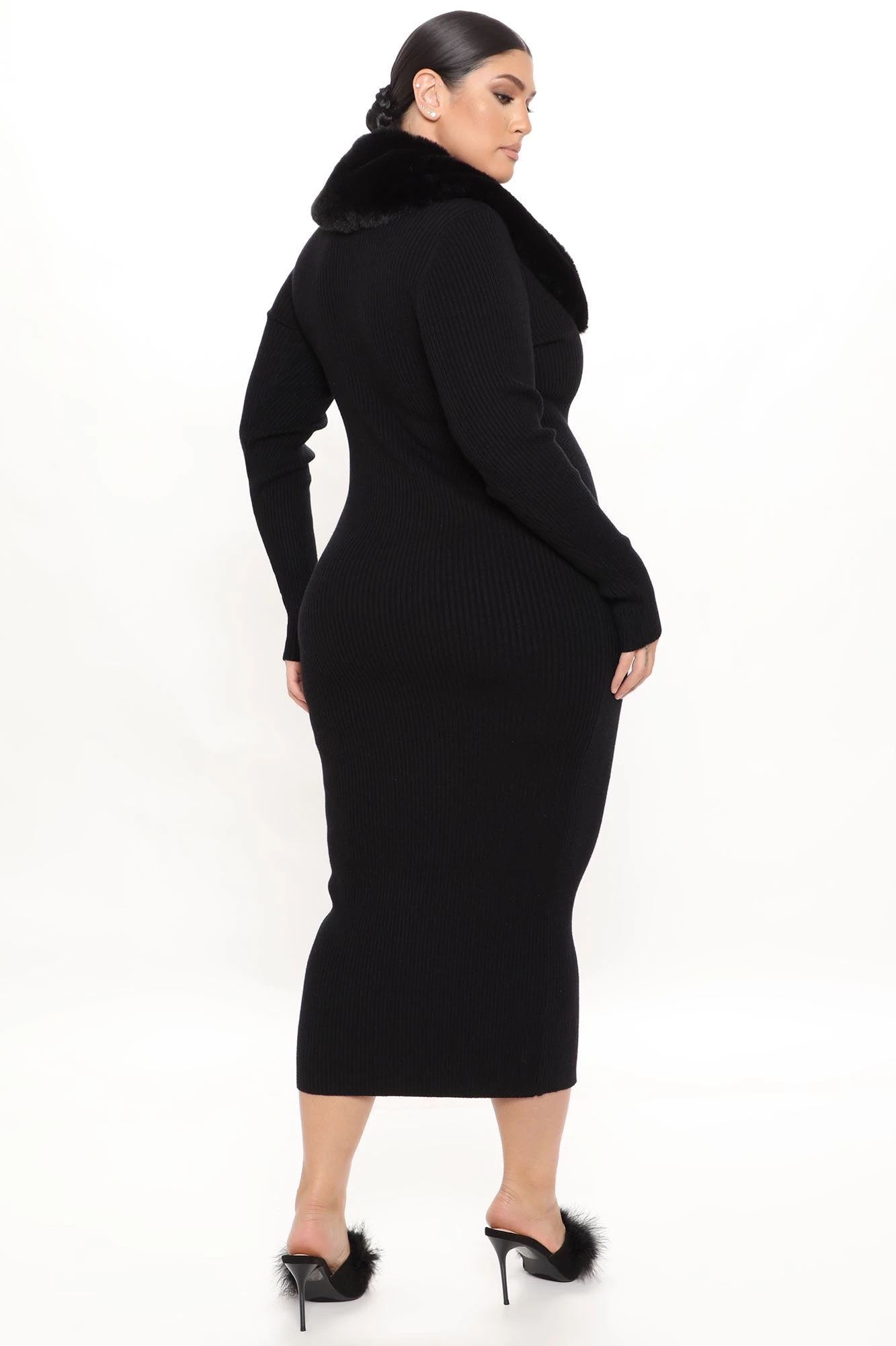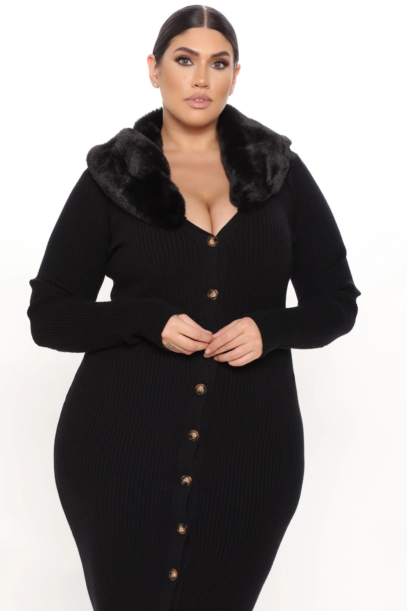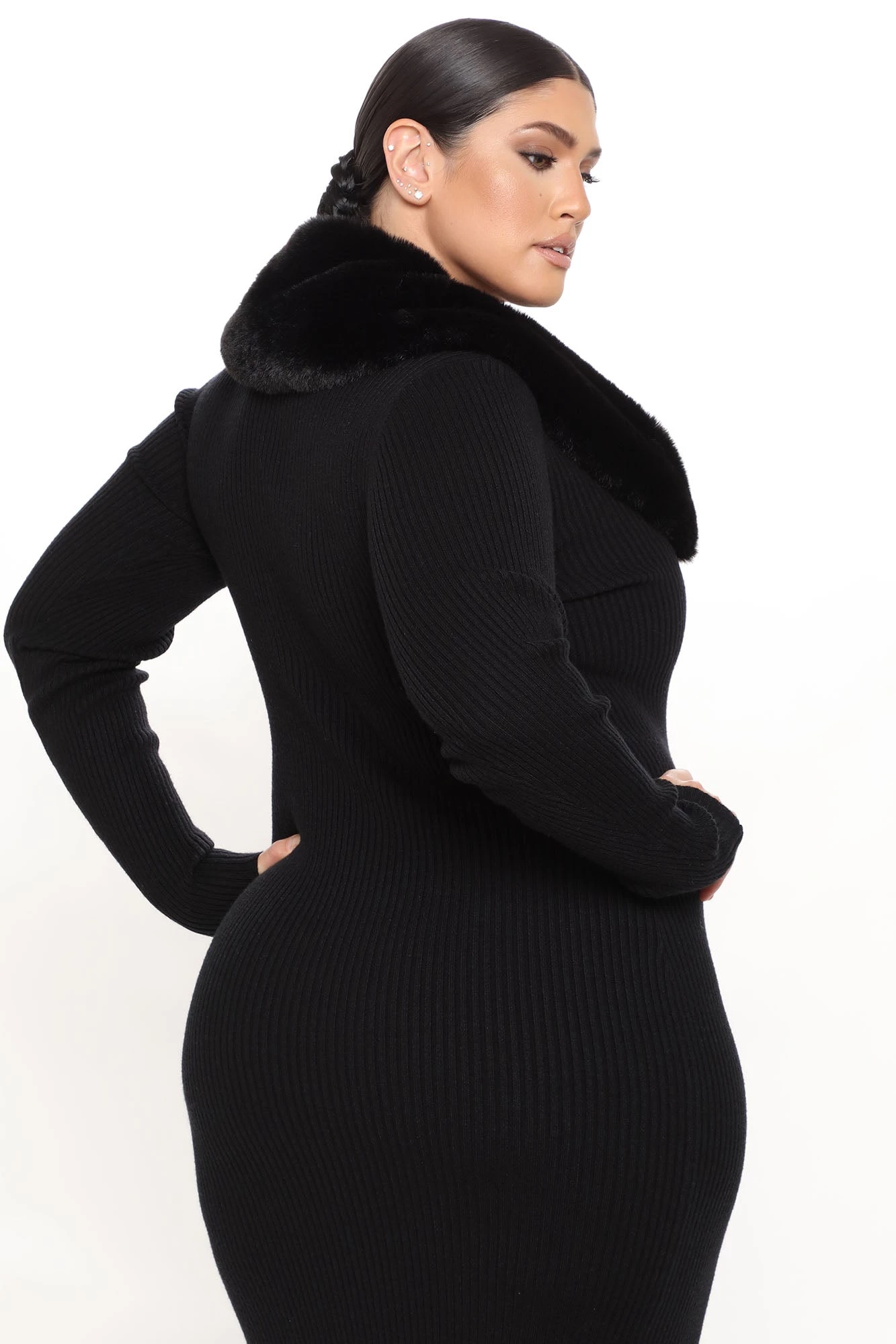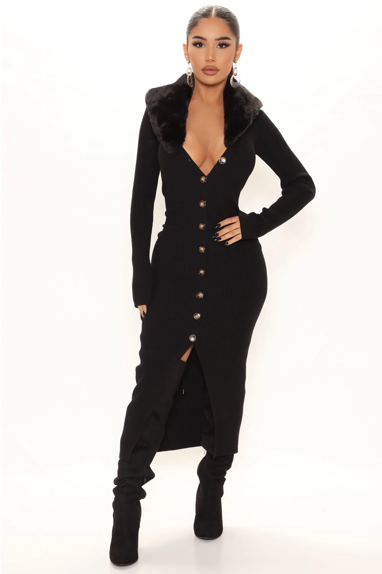 Fashion Nova Don’t Be Faux Real Sweater Midi Dress – Black