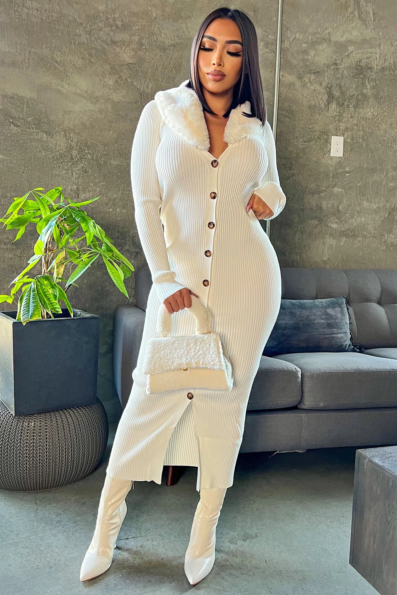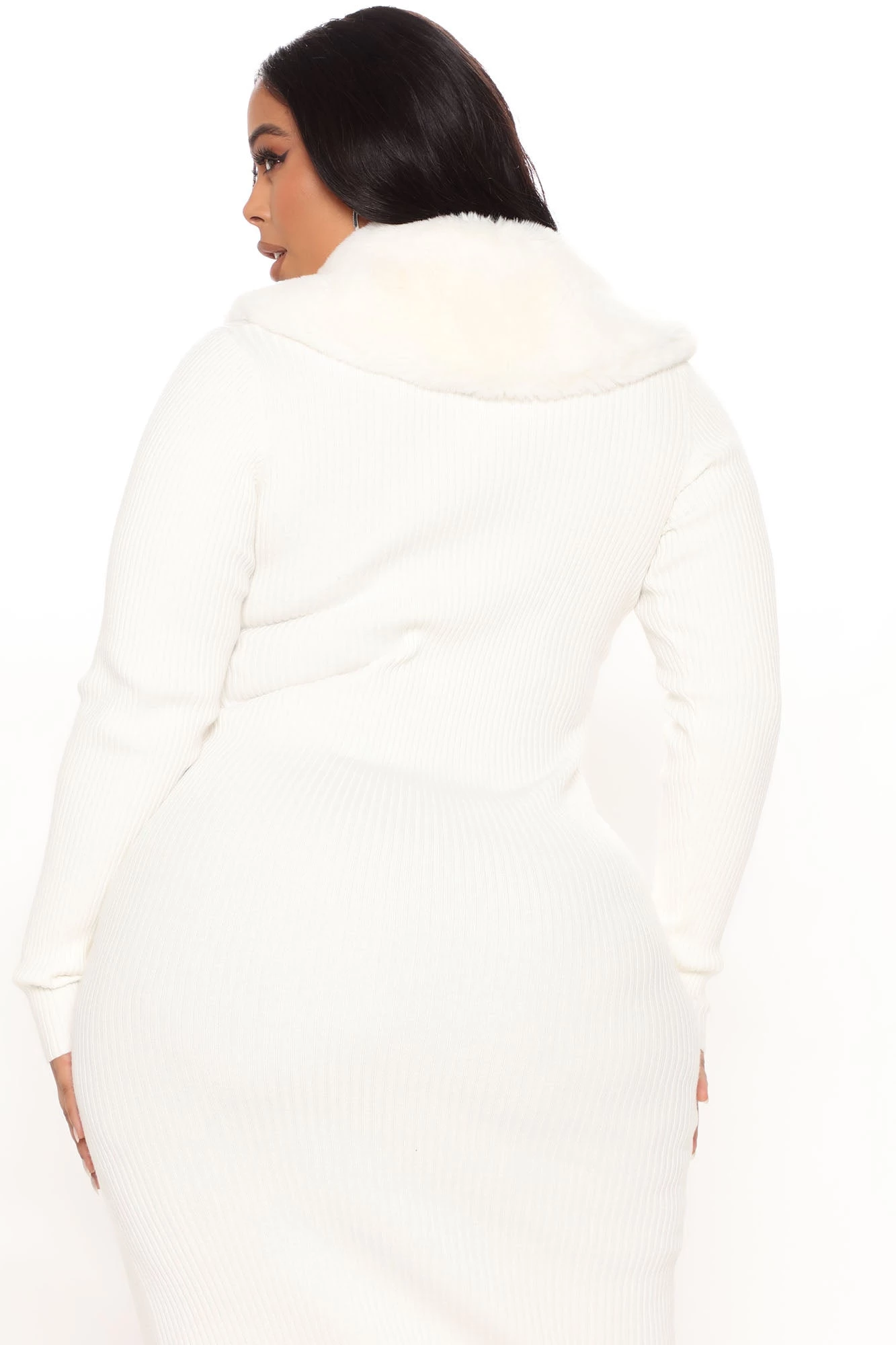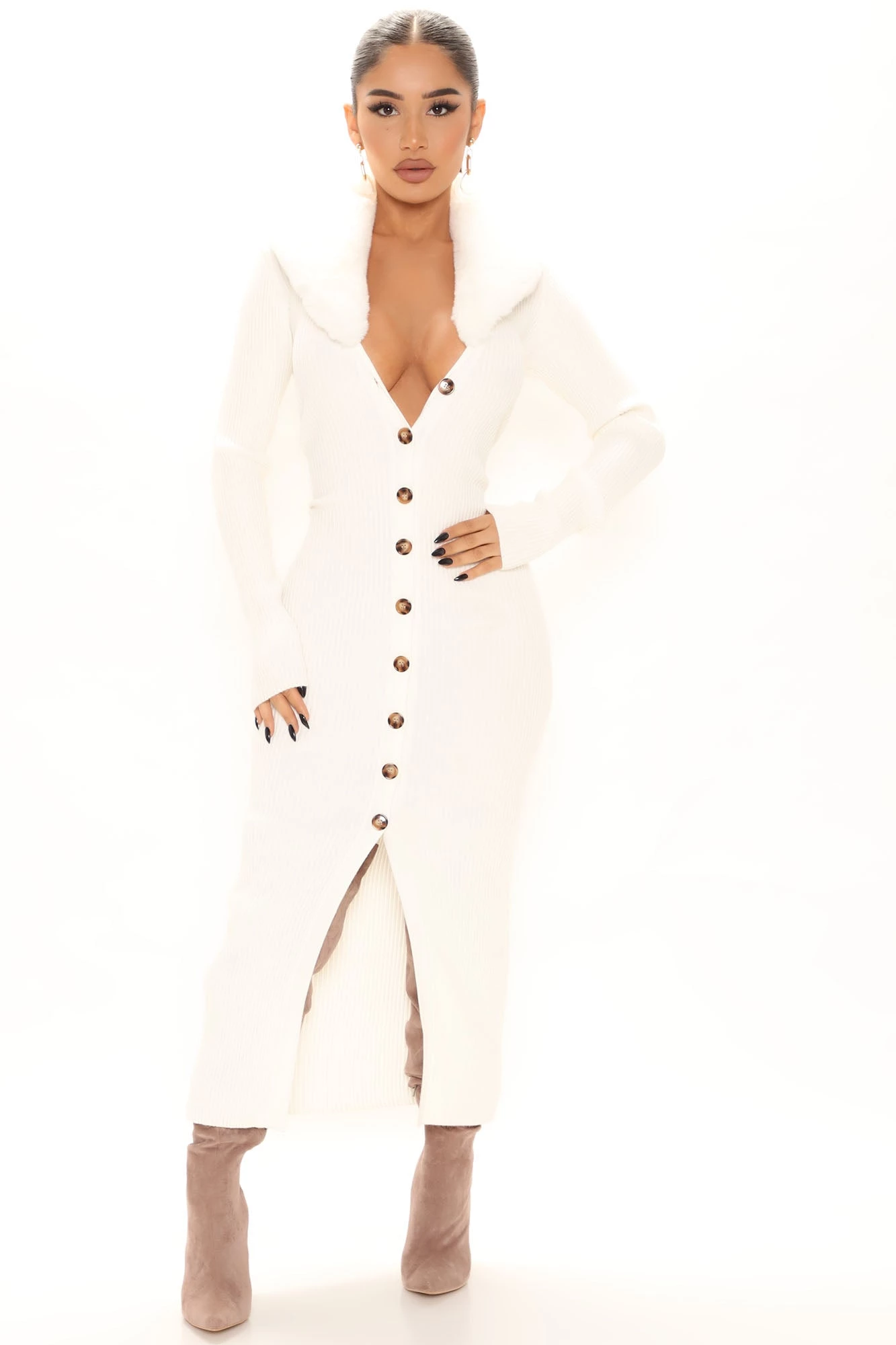 Fashion Nova Don’t Be Faux Real Sweater Midi Dress – Cream