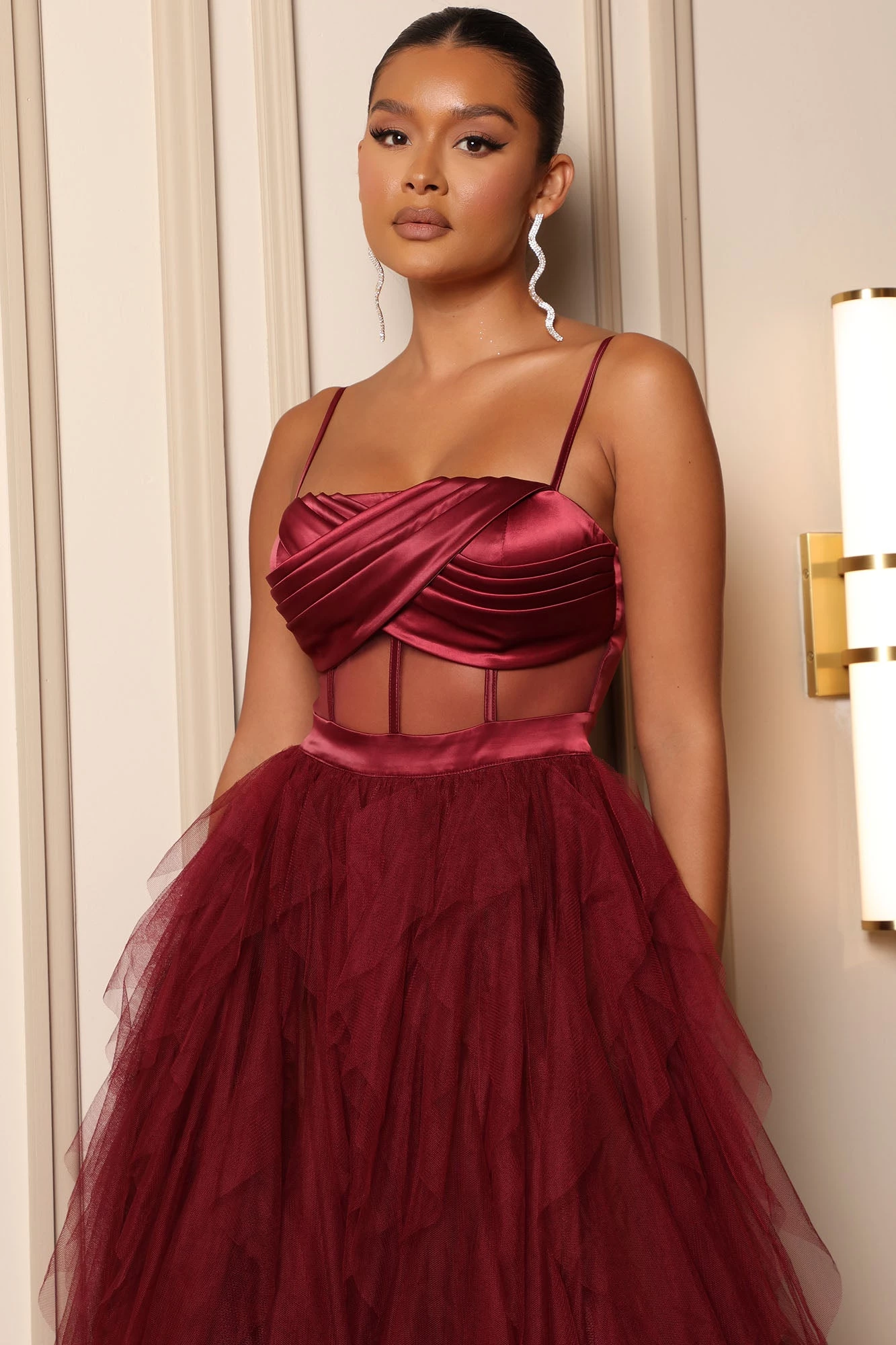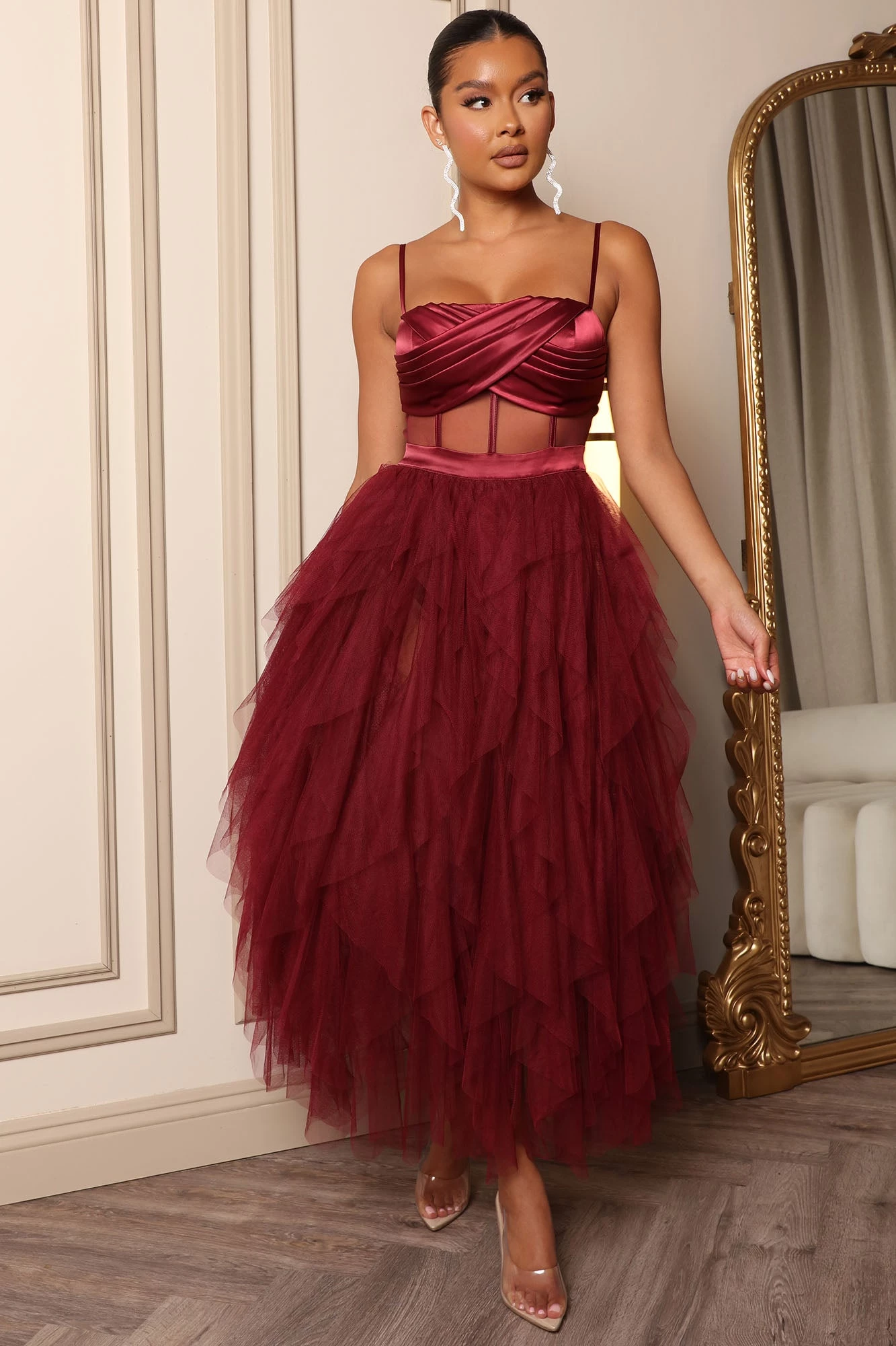 Fashion Nova Dream Of Me Tulle Maxi Dress – Burgundy
