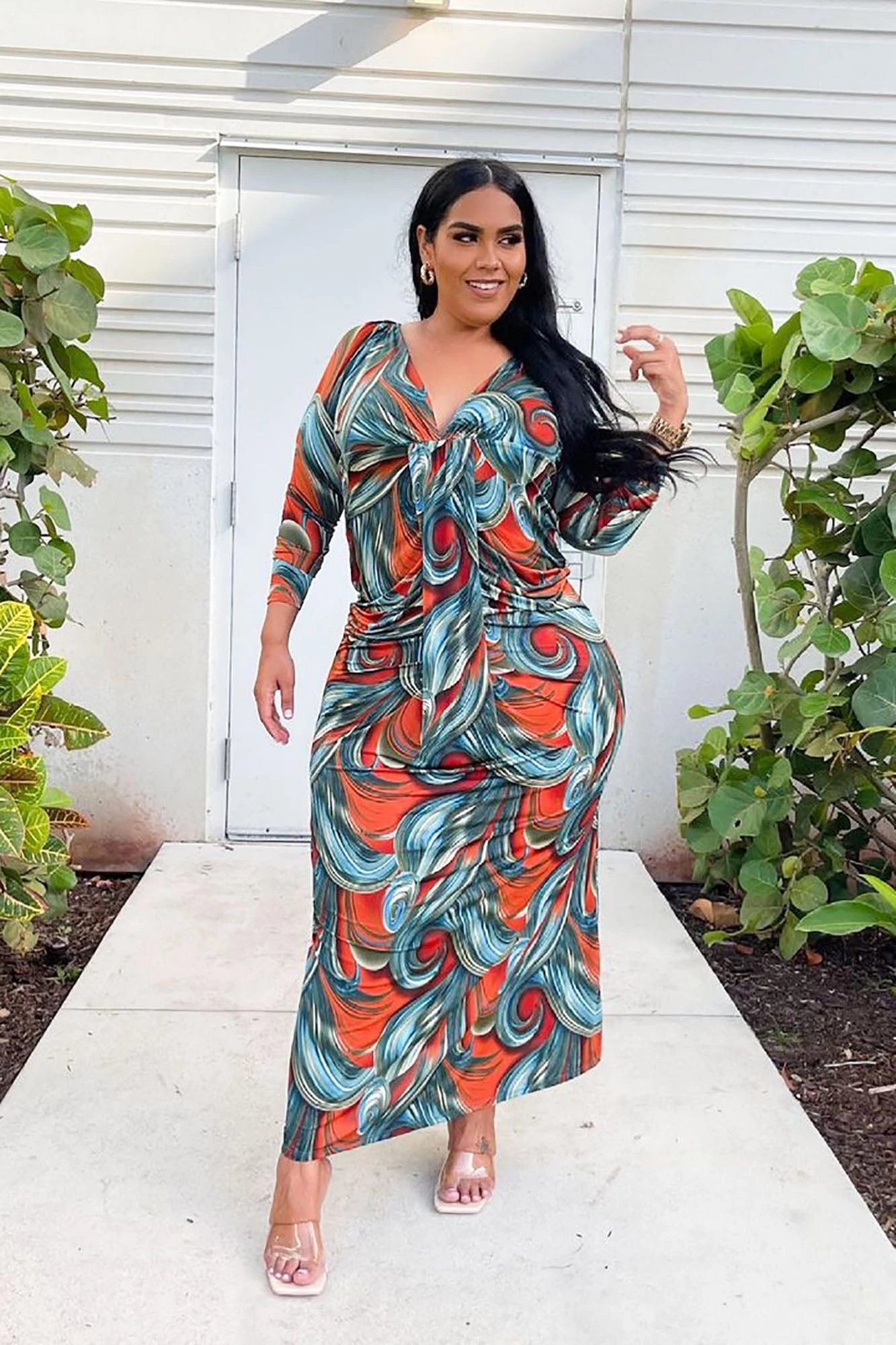 Fashion Nova Dream Wave Maxi Dress – Orange/combo