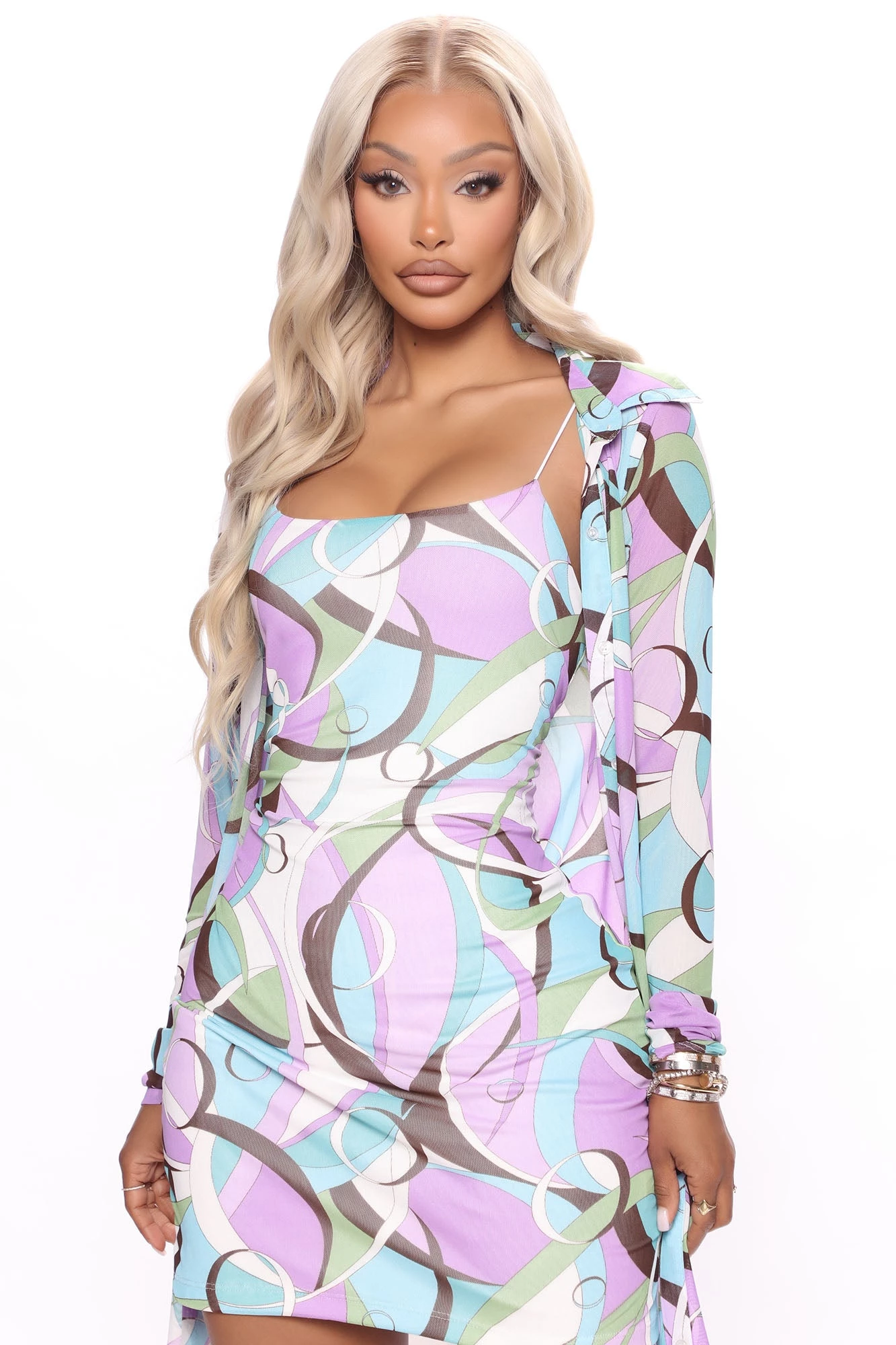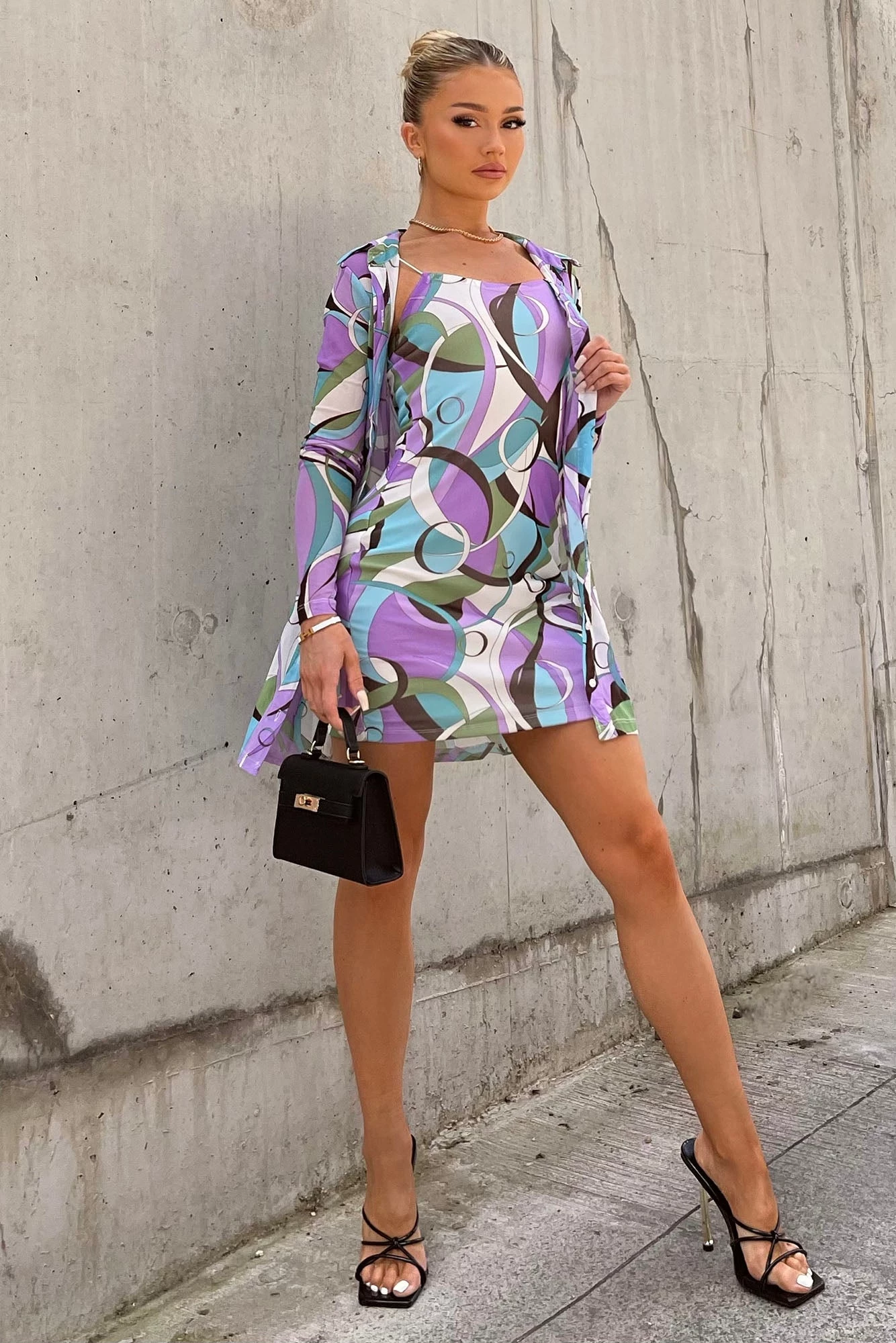 Fashion Nova Eliane Mesh Mini Dress Set – Lavender/combo
