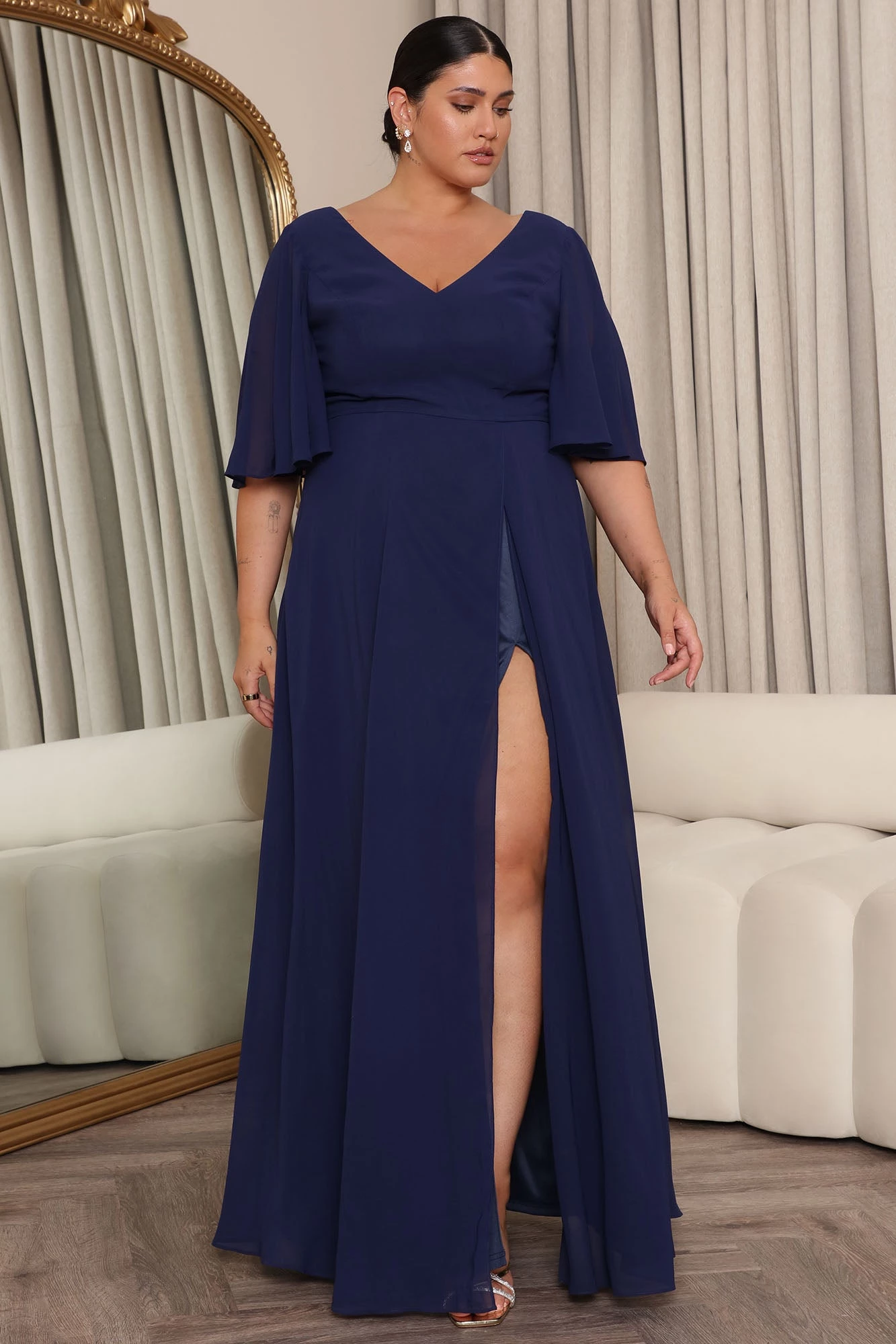 SKU: 6536466759804 Category: Maxi Dresses Tags: All Promo, bridesmaid, color:Navy, ColorFam-Blue, detail:High Slit, Dresses, fabric:Chiffon, fallbogo, Last Chance
