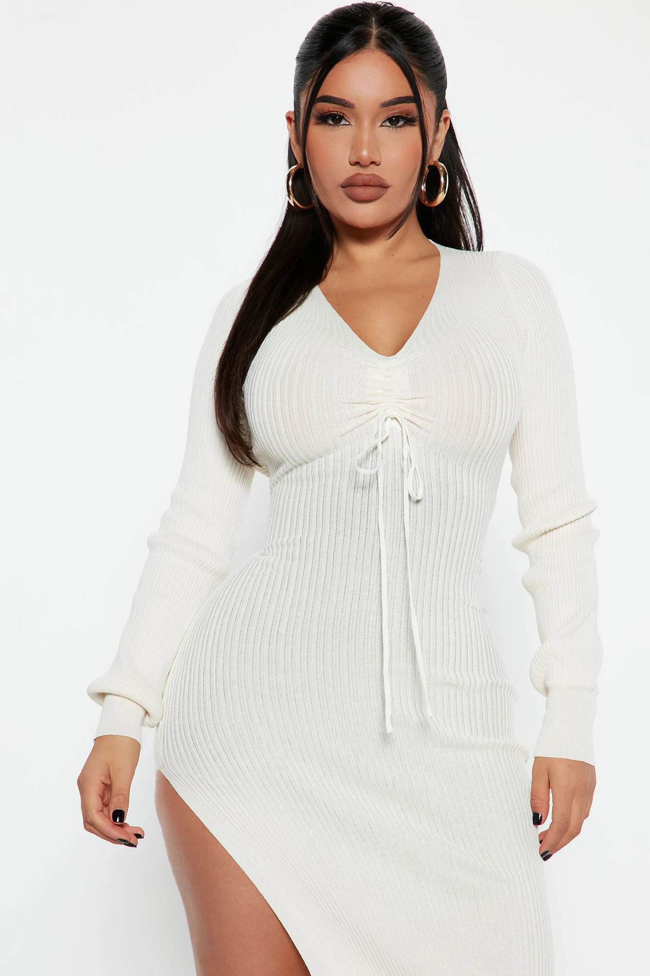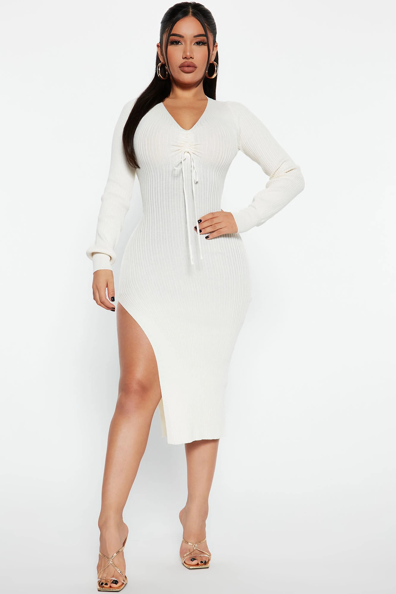Fashion Nova Erica Sweater Midi Dress – Cream