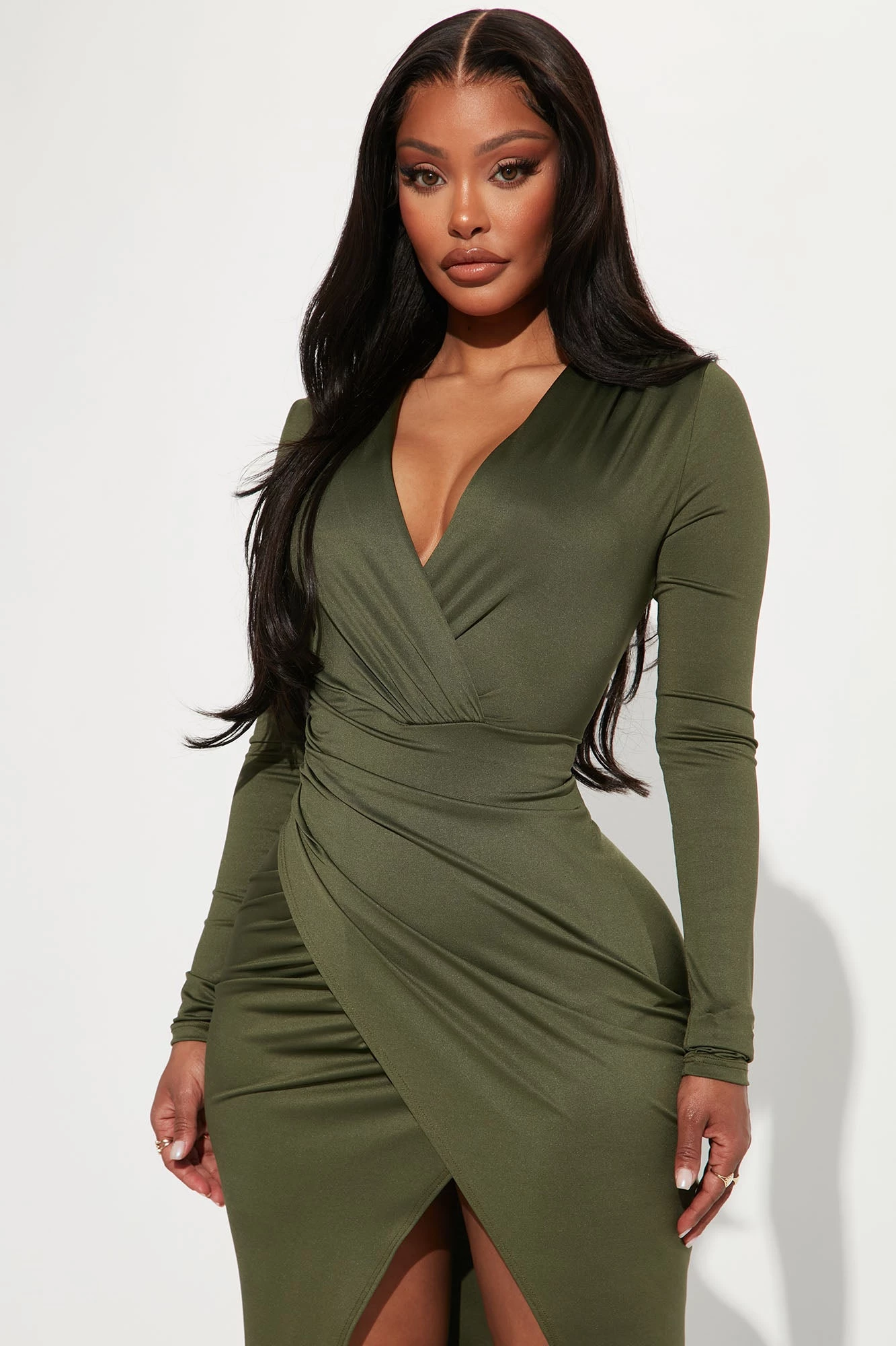 SKU: 6537459892348 Category: Midi Dresses Tags: All Promo, Club, clubdresses, color:Olive, ColorFam-Green, detail:High Slit, Dresses, fallbogo, falldresses