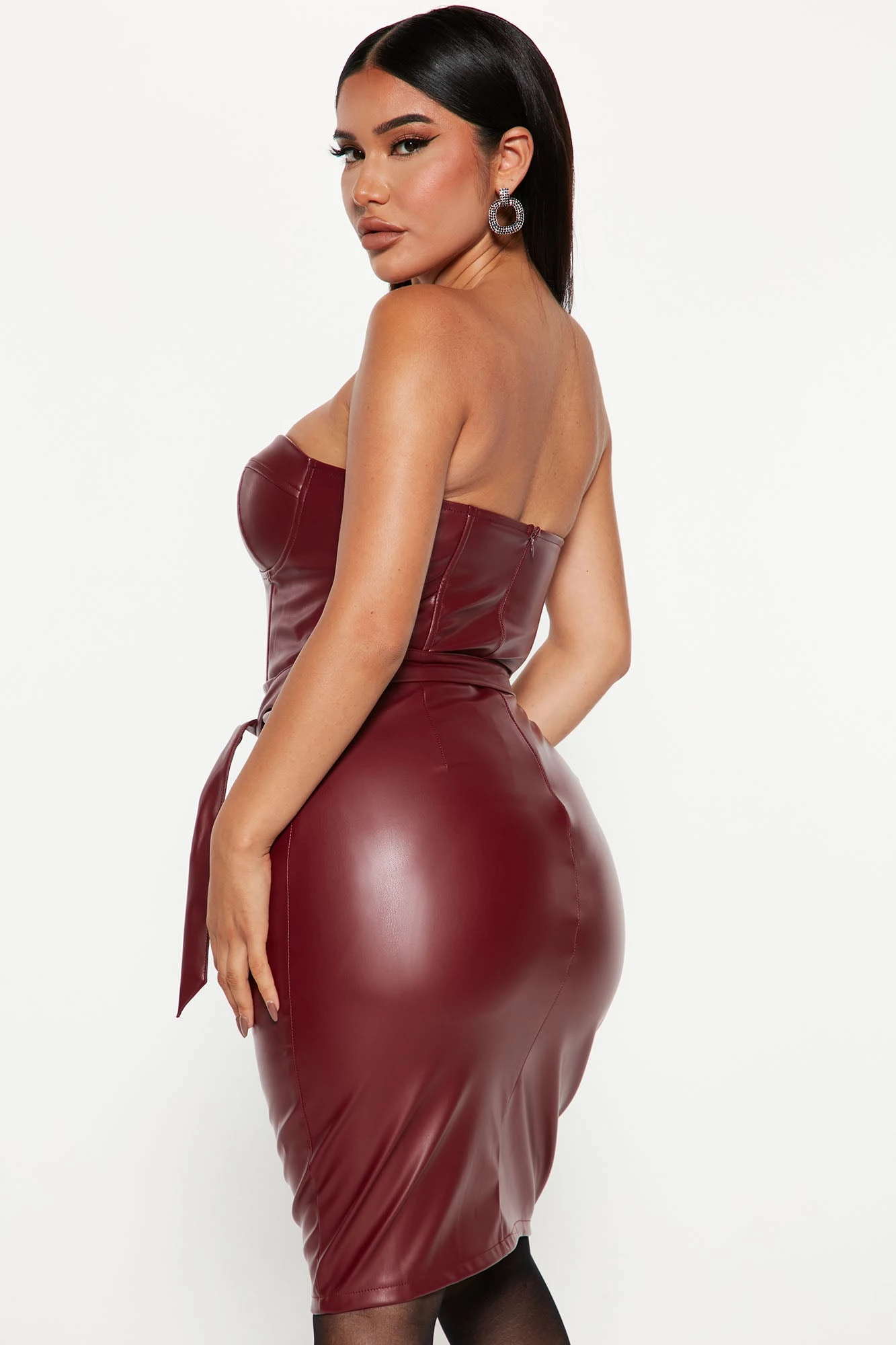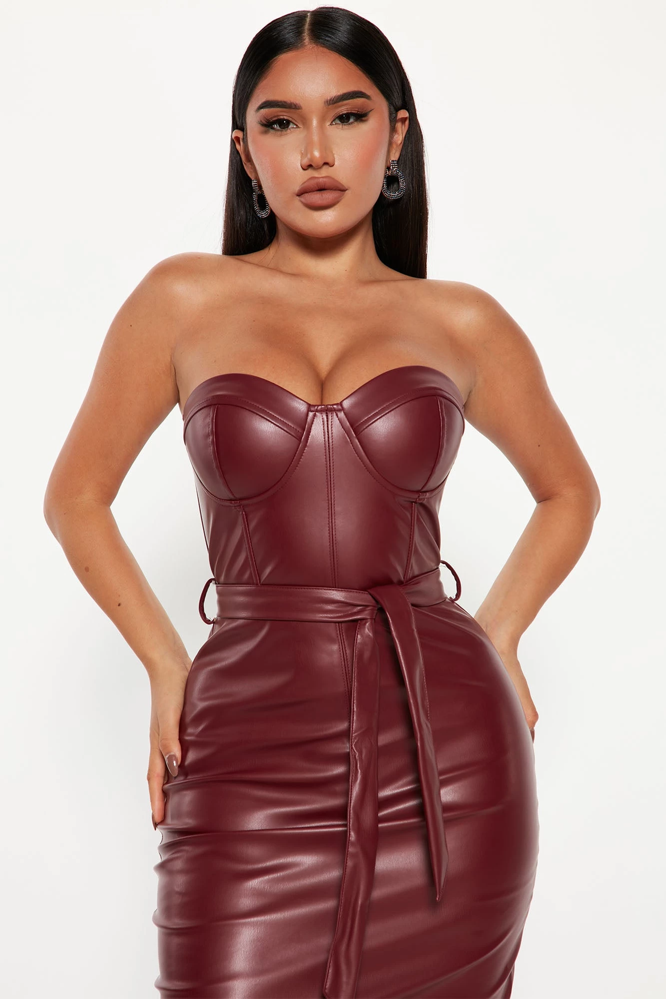 Fashion Nova Falling Faux Leather Midi Dress – Burgundy