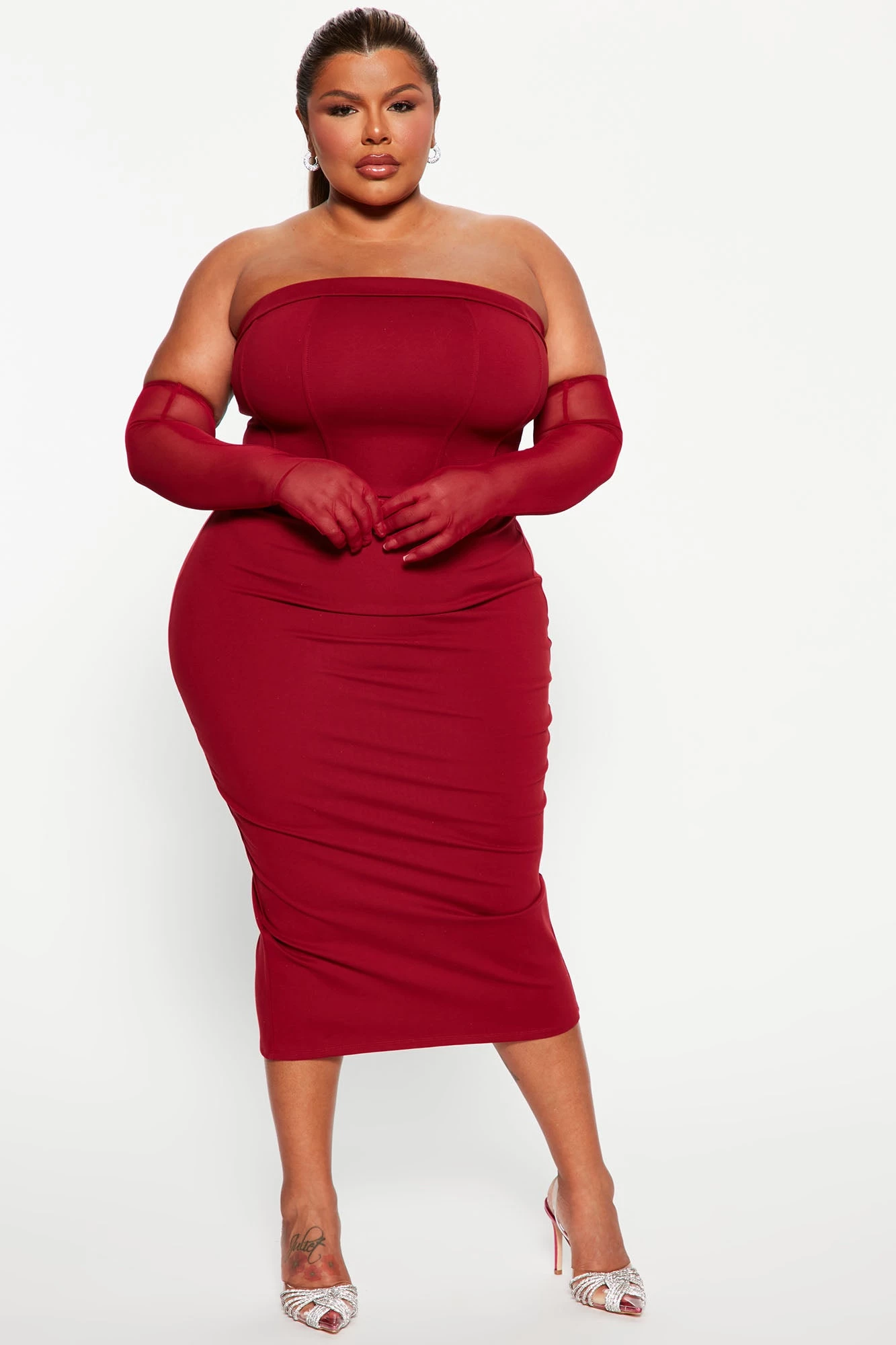 Fashion Nova Fashion Strut Midi Dress Set – Wine