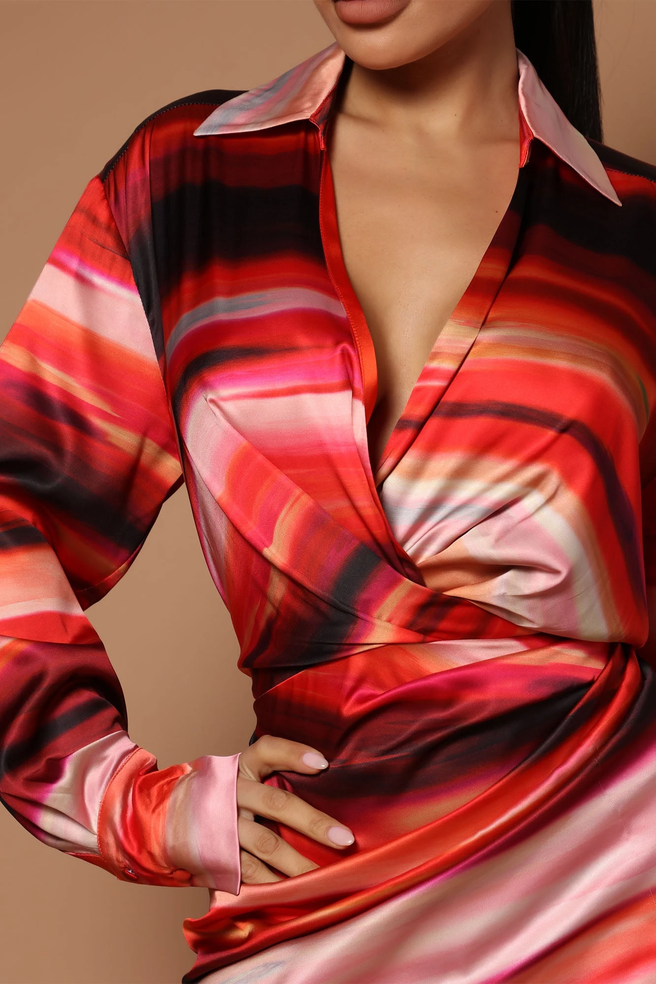 Fashion Nova Fay Satin Mini Dress – Orange/combo