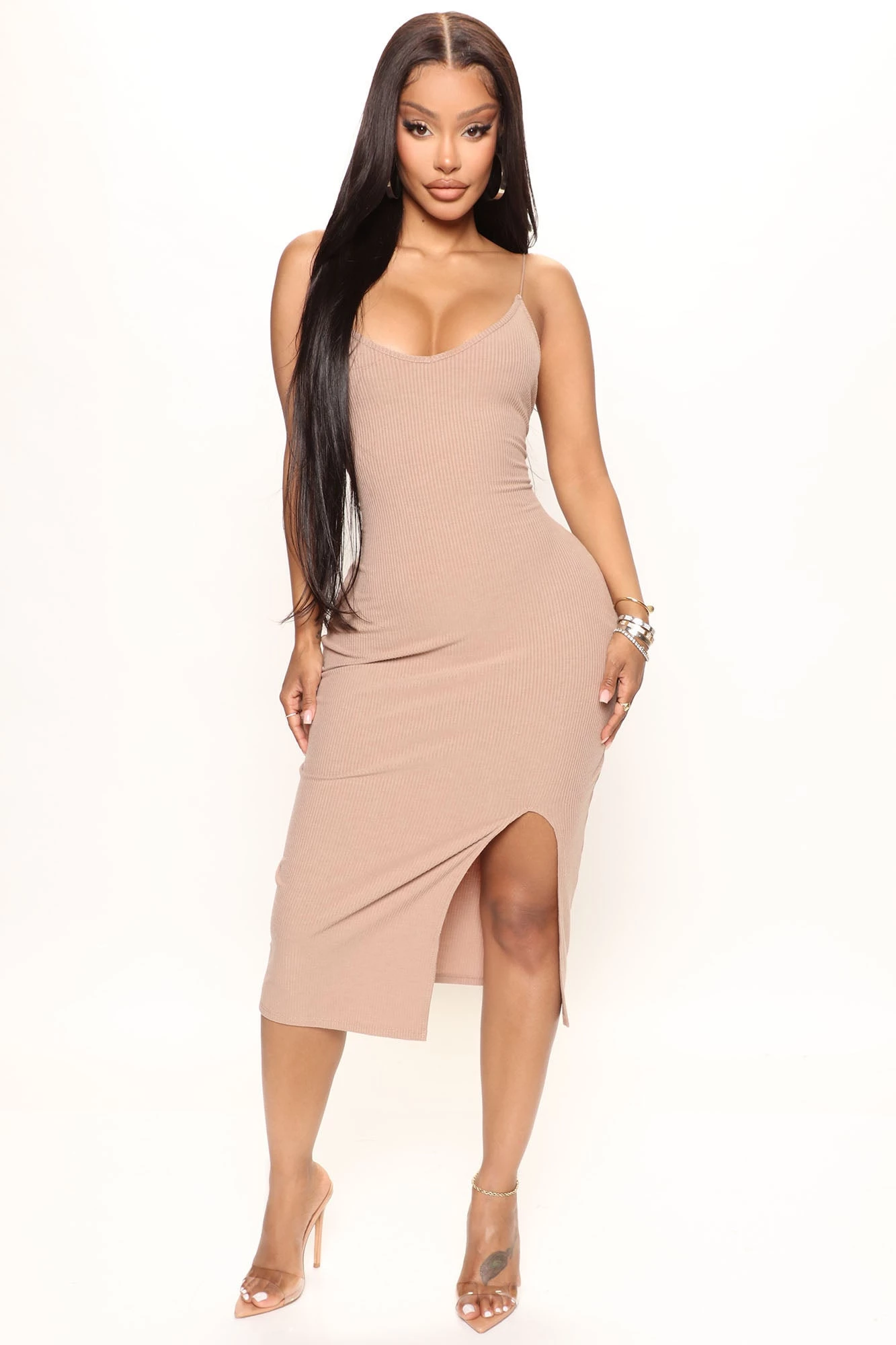 - Ribbed Midi Dress