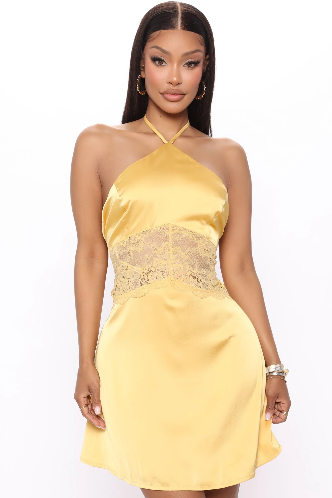 Fashion Nova Flirty And Sweet Satin Mini Dress – Yellow