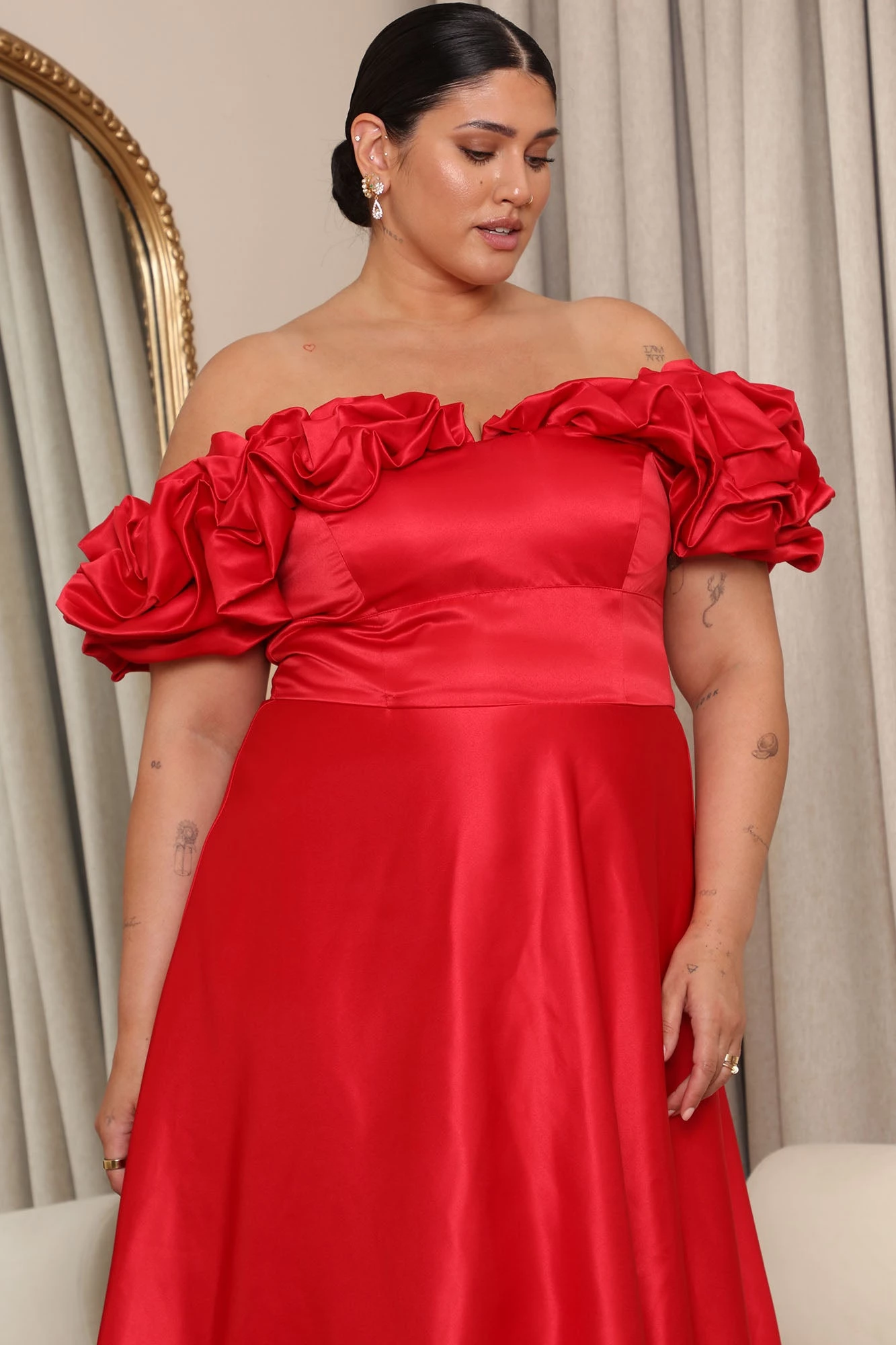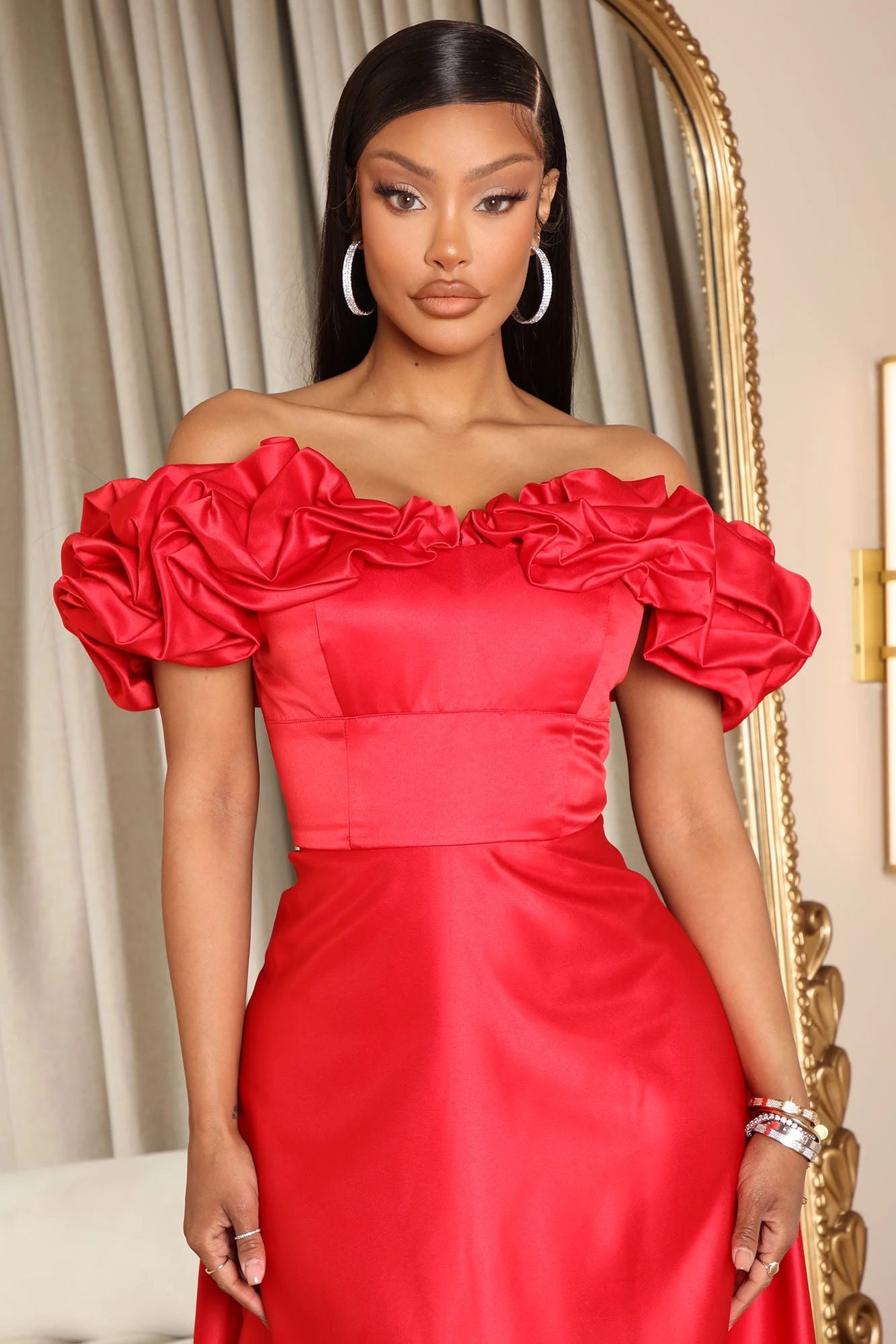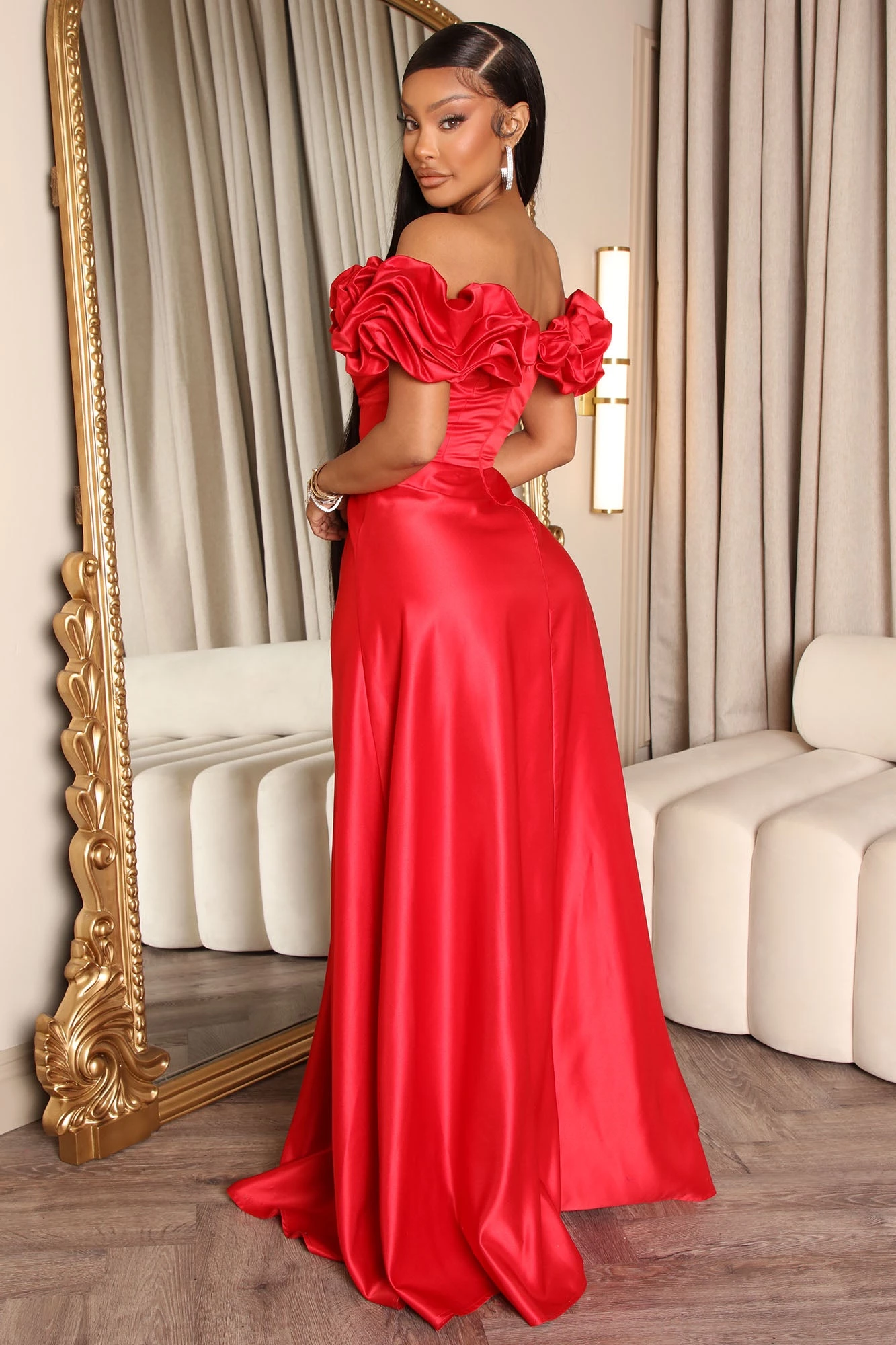 Fashion Nova Giving Ultimatums Satin Maxi Dress – Red