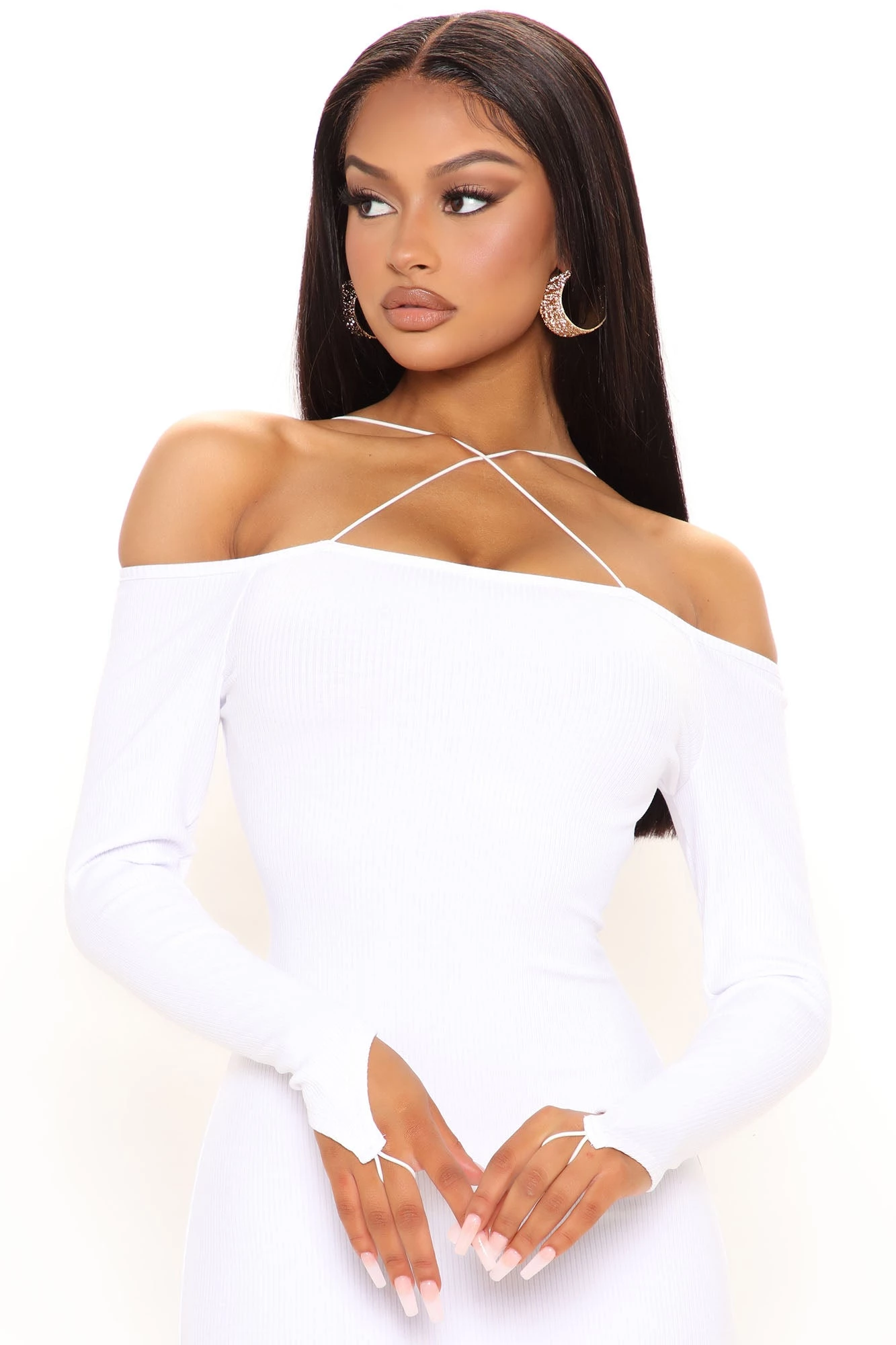 Fashion Nova Hilaria Ribbed Midi Dress – White