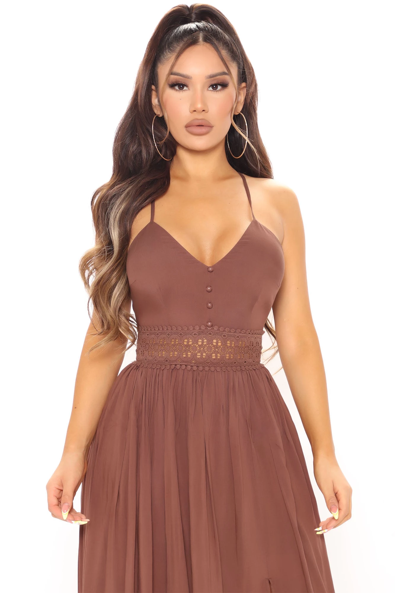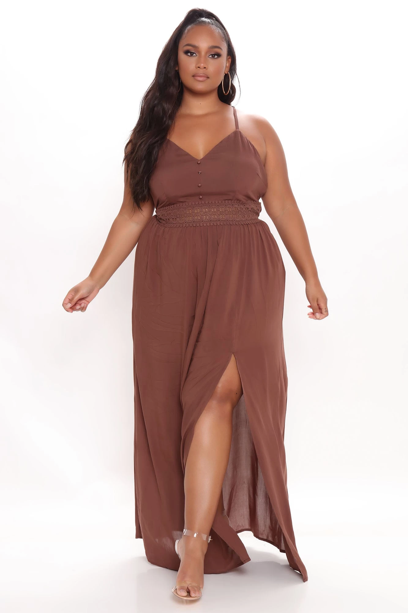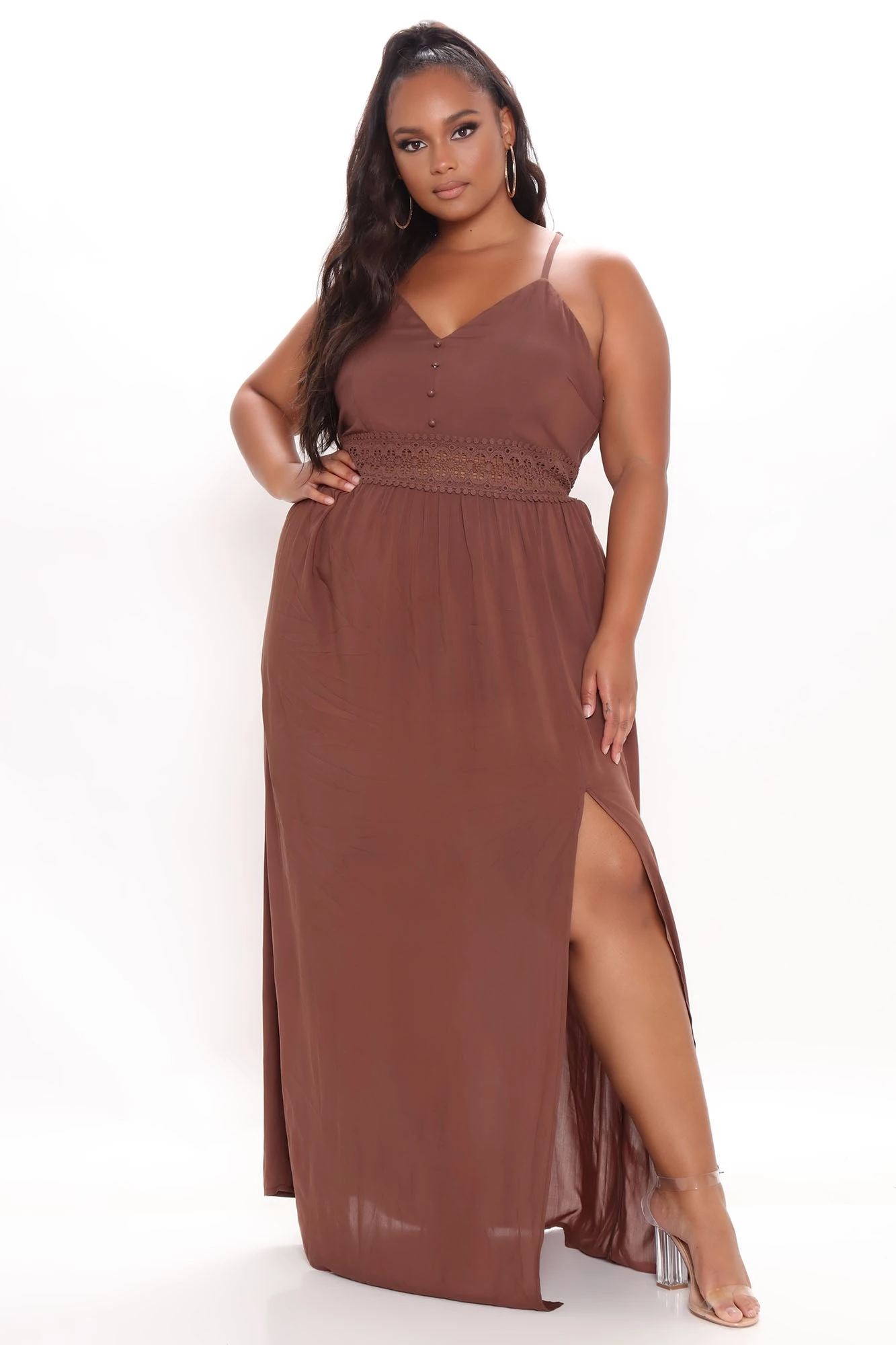 Fashion Nova Holy Slit Sleeveless Maxi Dress – Brown